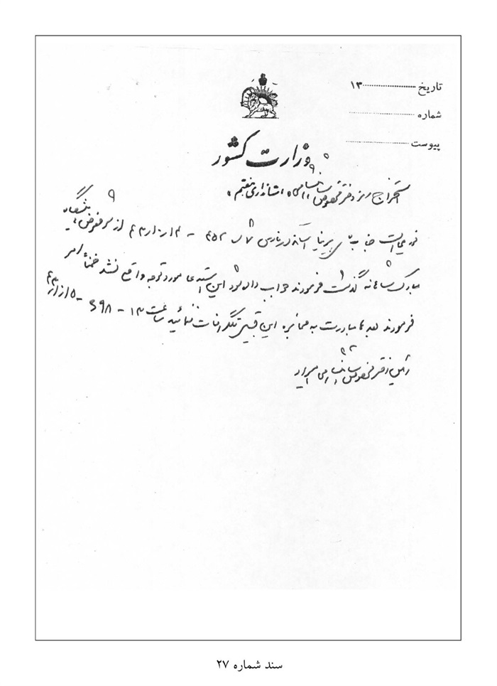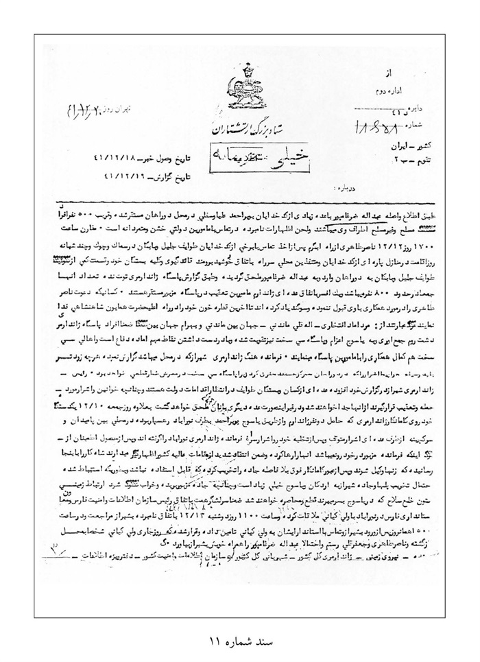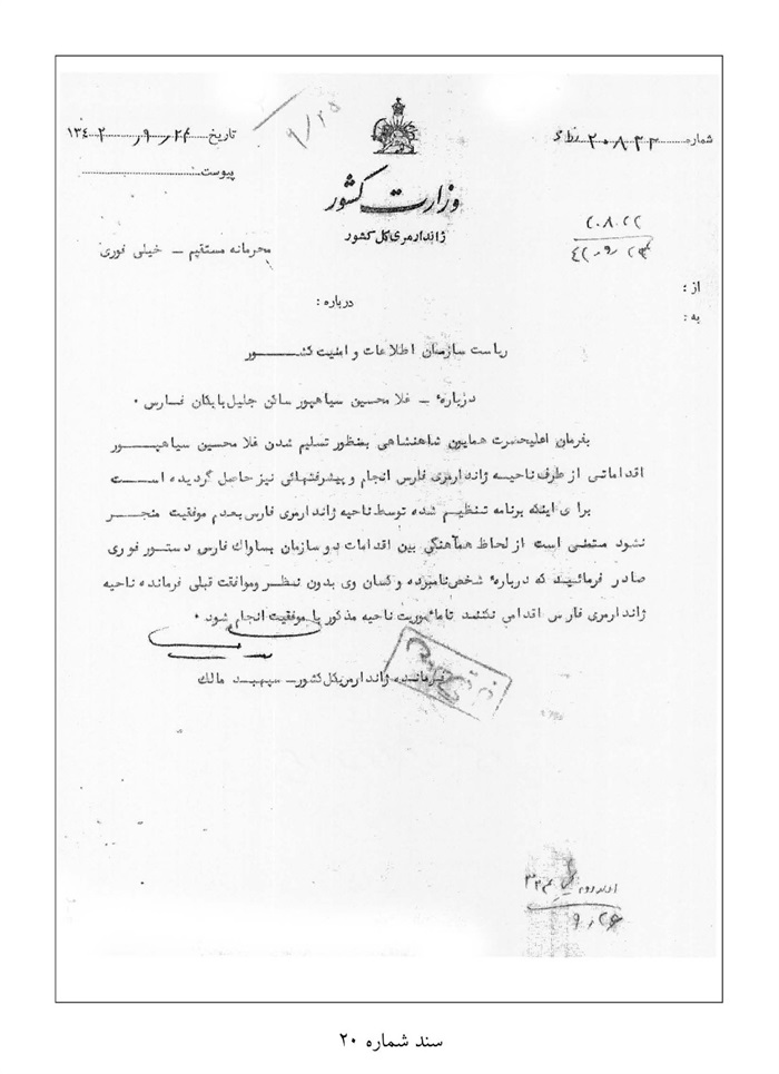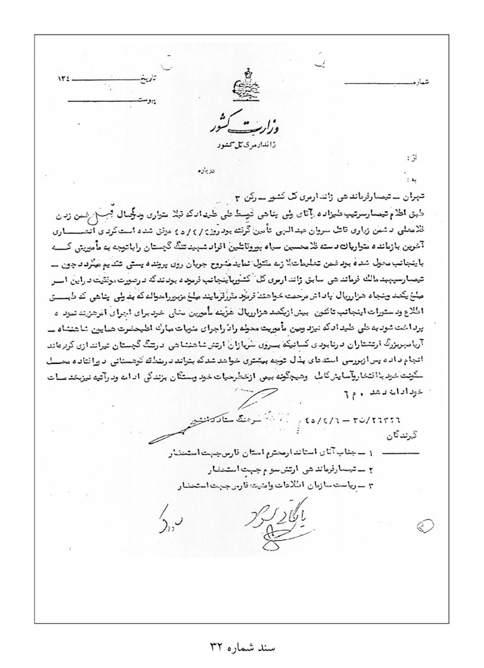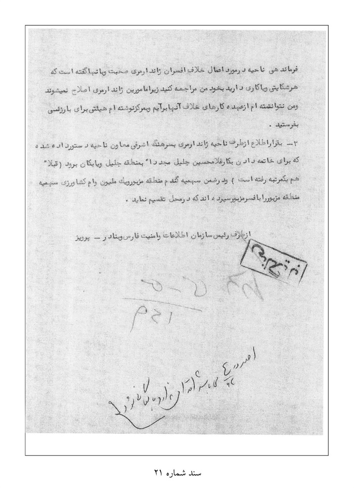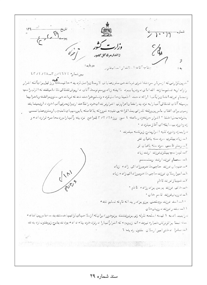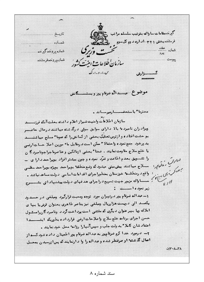 علاوه بر اسناد مضبوط در پرونده های انفرادی، از اسناد موجود در پرونده های مربوط به عشایر کهگیلویه و بویراحمد و عشایر فارس، استفاده شده است. گذشته از این، «مجموعه های اسنادی» دیگری که تاکنون بوسیله مراکز مطالعاتی و تحقیقاتی منتشر گردیده؛ متضمن اهمیت بسیاری است، که در بخش منابع بعد از انقلاب معرفی شده است.