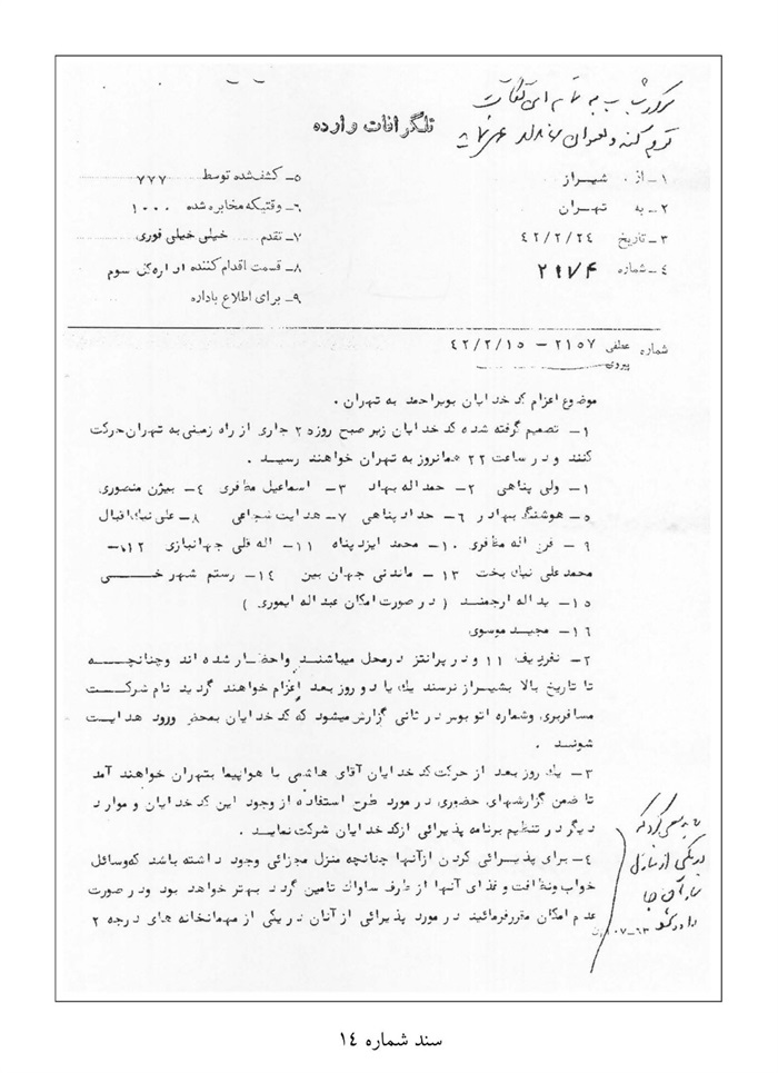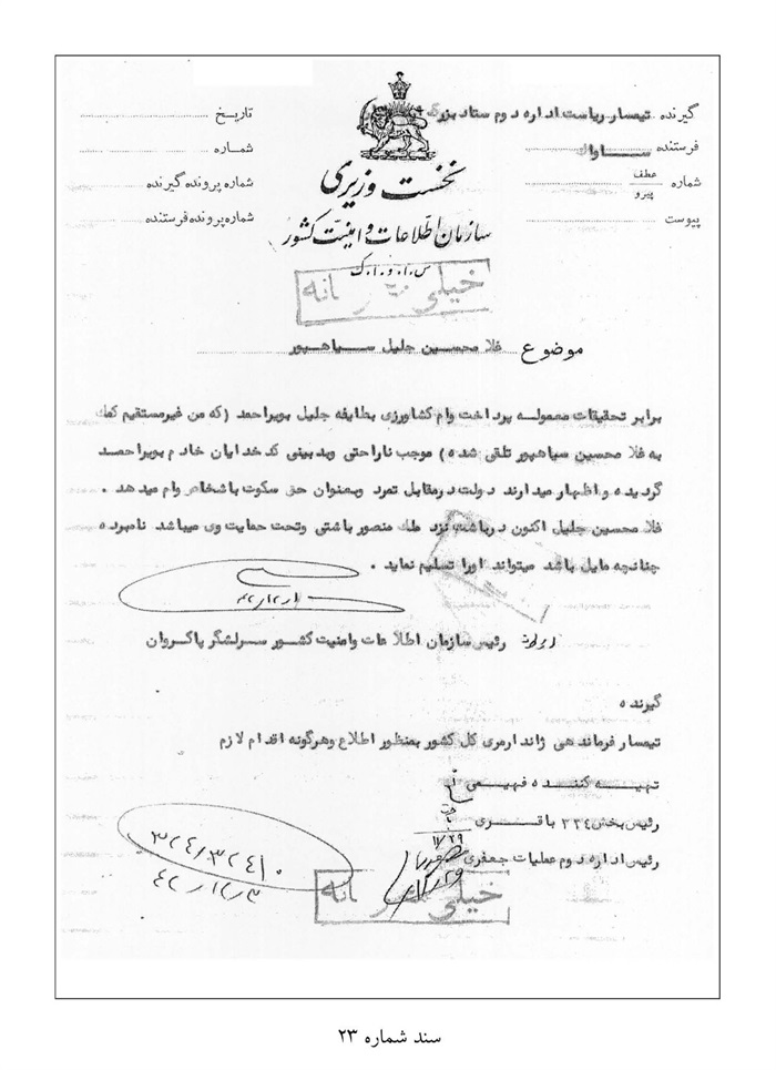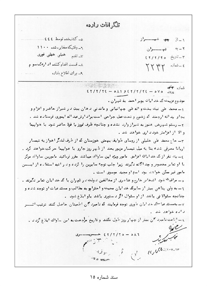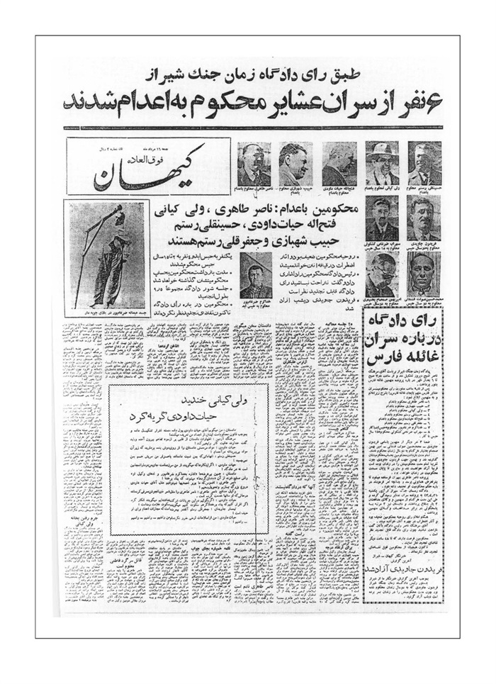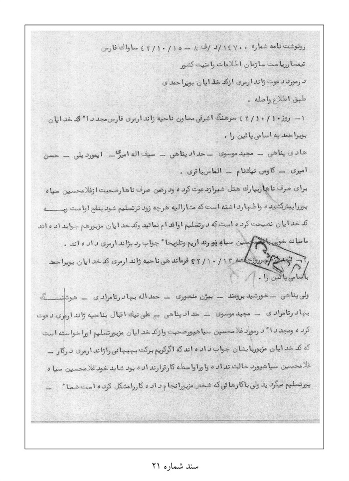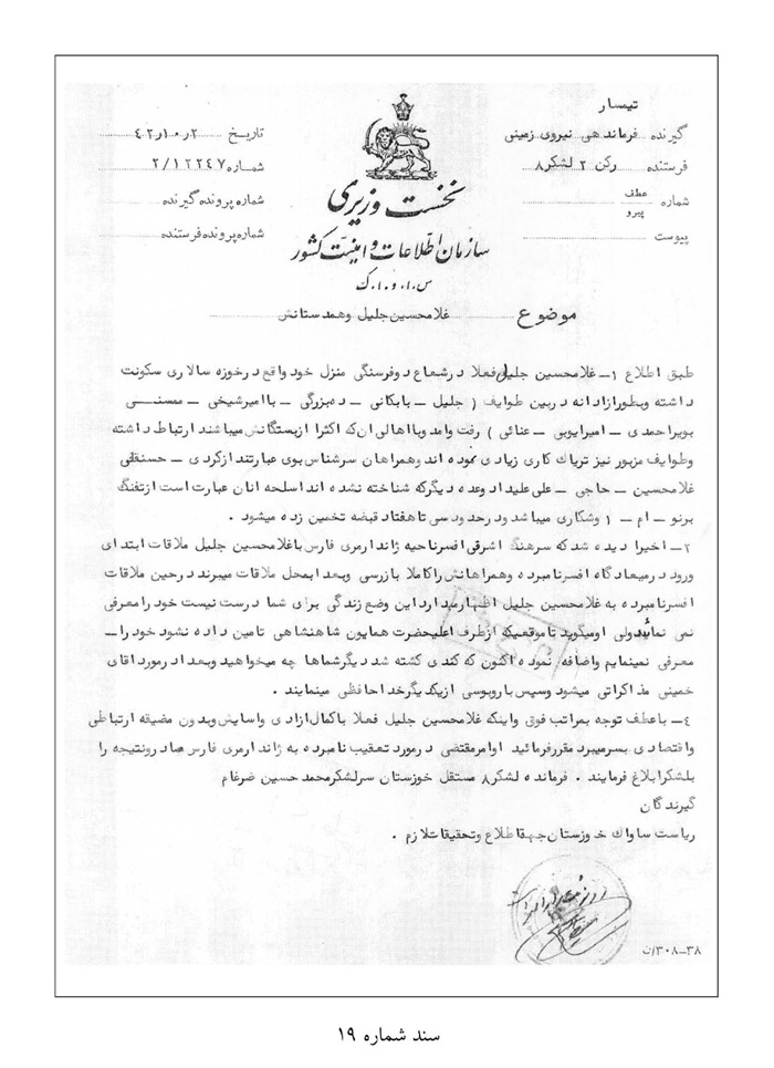 خصوص «کیفرخواست»، از جمله اسناد و مطالب مهم کتاب حاضر است .(1) برخی اسناد کتاب، به ویژه اعلامیه های آیت الله طالقانی در حمایت عشایر فارس، ارزشمند و مفید است.
