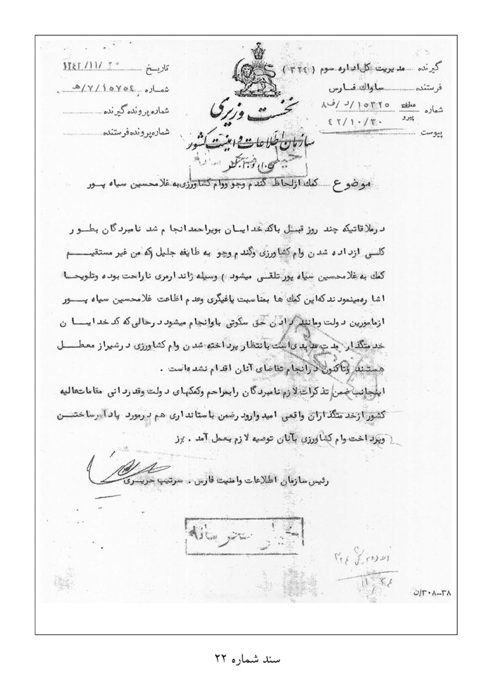 یادداشت : پشت جلد به انگلیسی: .Keshvad Siahpour. Uprising of tribes in Southern Iran 1962-1965