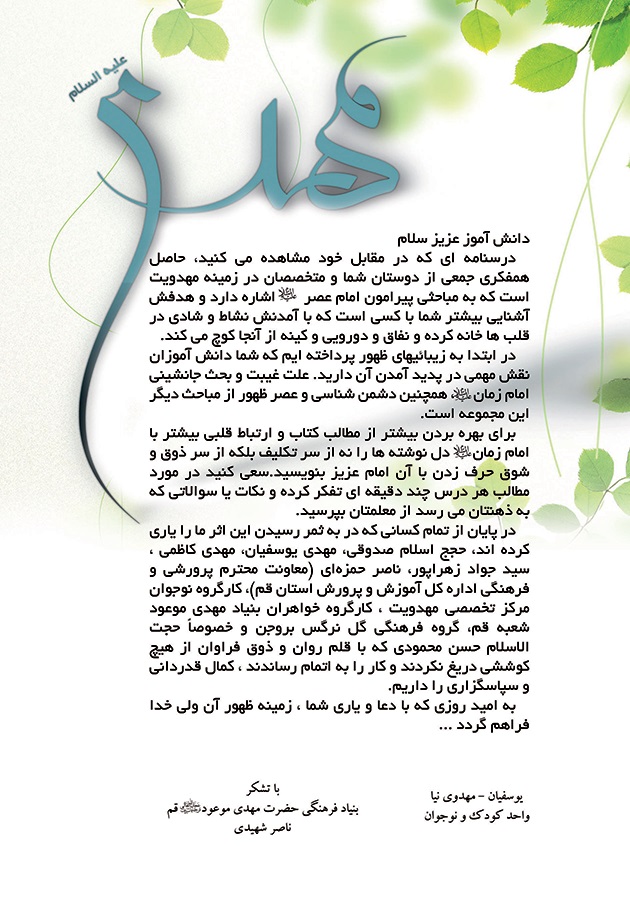 مشخصات نشر:قم: بنیاد فرهنگی حضرت مهدی موعود( عج)، 1390.