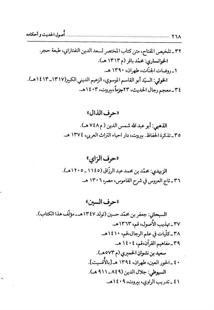 وقد طلب منّی غیر واحد من الفضلاء أن أردفه بکتاب ثان فی علم الدرایة، فنزلت عند رغبتهم، فوضعت هذا الکتاب علی ضوء کتاب «البدایة» للشهید الثانی _بعد ما ألقیت محاضرات علی أساسه _ واقتفیت أثره فی أکثر المباحث، مکتفیاً بالمهمّات من المسائل، ضارباً الصفح عن غیرها، محرّراً بعبارات واضحة، بعیداً عن الإیجاز والإطناب، وعن التعقید والإغلاق، وسمّیته «أُصول الحدیث وأحکامه» عسی أن یجعله سبحانه ذخراً لیوم المعاد، یوم تلتفّ الساق بالساق.