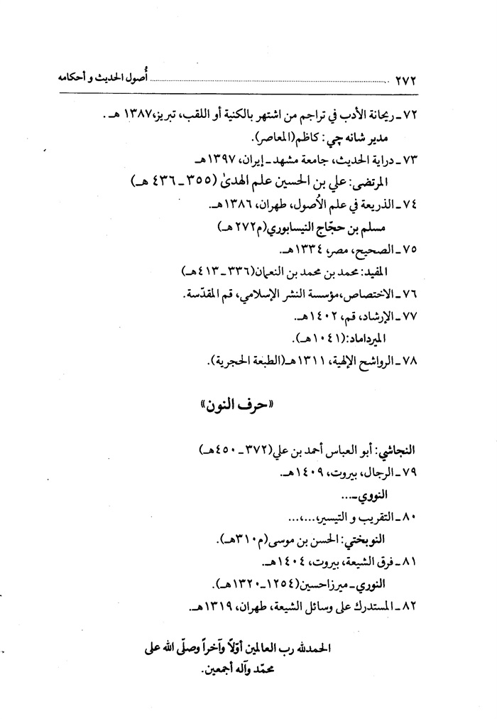 أمّا بعد: فلمّا کان علم الحدیث من أشرف العلوم وأوثقها وأکثرها نفعاً، لاتّصاله باللّه ورسله وخلفائه، عکف المسلمون _ و فی طلیعتهم الشیعة الإمامیة _ علی تدوینه وترصیفه و من ثمّ نقله إلی الأجیال، وبذلک أرسوا قواعد الشریعة، و أضفوا علیها سمة الخلودِ والدوام.
