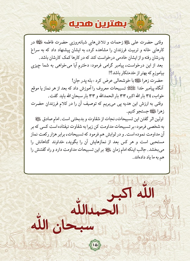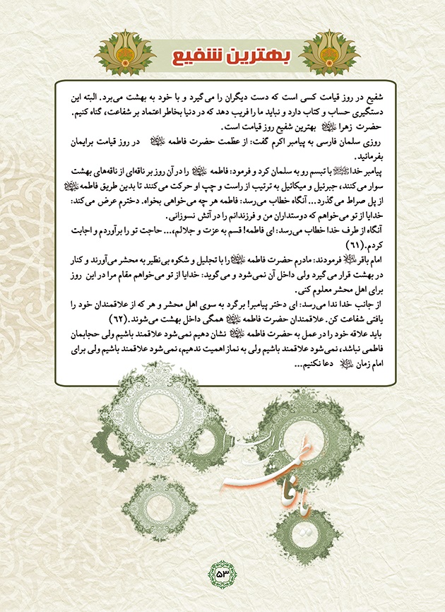 موضوع : فاطمه زهرا (س)، 8؟ قبل از هجرت - 11ق. -- فضایل