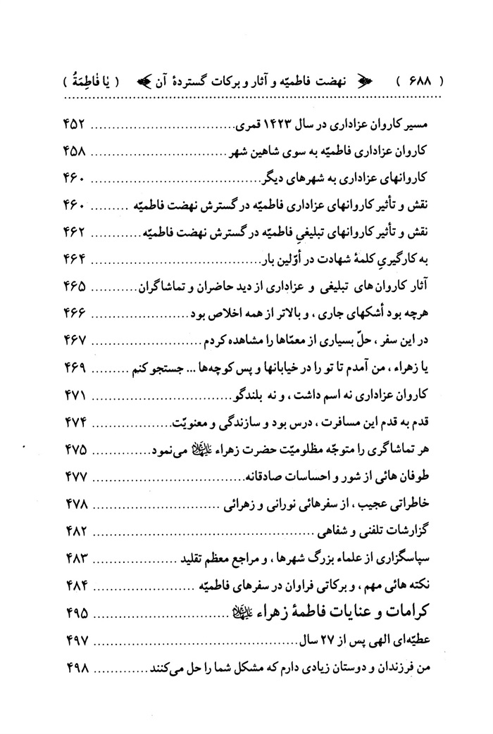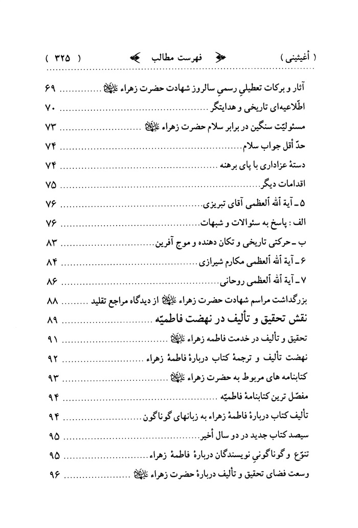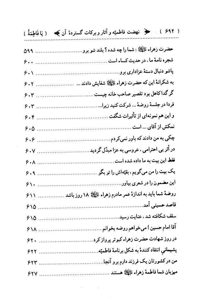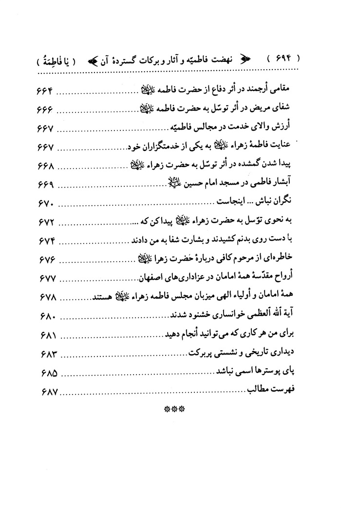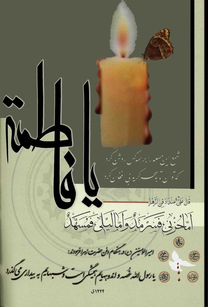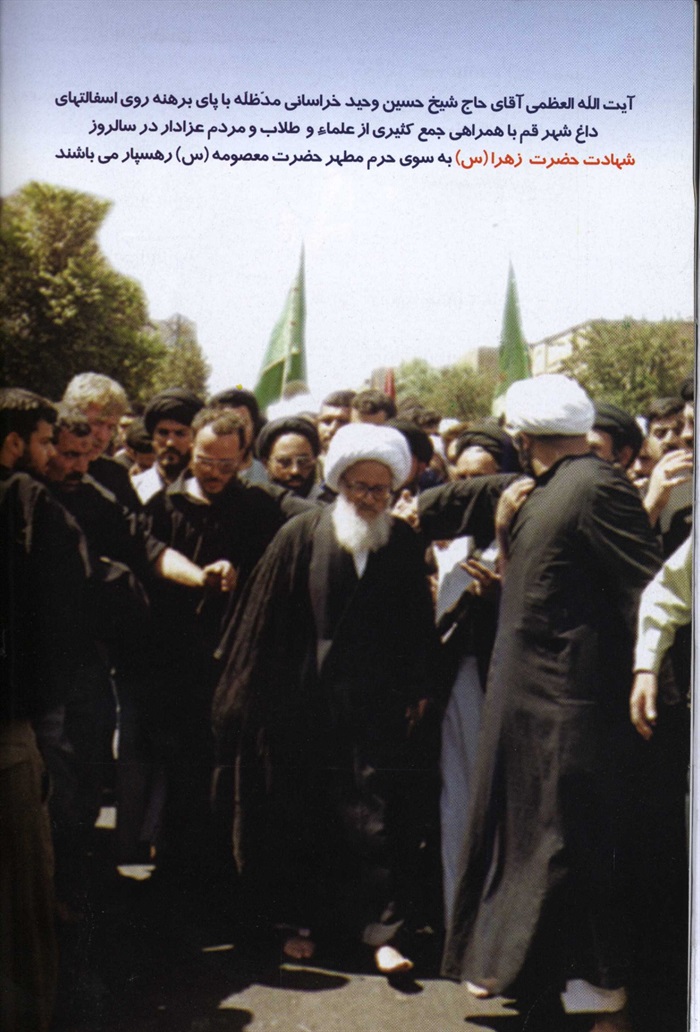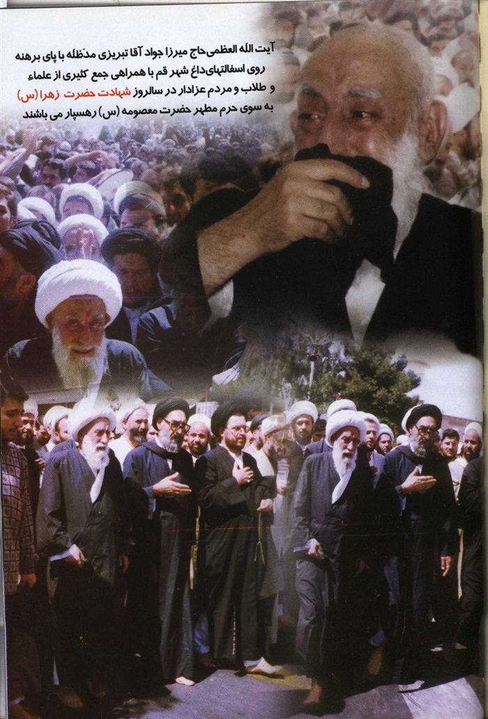 مقدس و حق مسلم و غصب شده آن شهیده مظلومه از مال و جان آبرو و مقام قلم و بیان تدبیر و درایت خود استفاده نمایند و خود را در جمع یاران و سربازان آن حضرت وارد نمایند که نمونه این امر را در اطلاعیه ها و فتاوای مراجع تقلید و با پای برهنه در عزاداری آن حضرت شرکت نمودن آنها و نیز تاسیس هزاران بیمارستان درمانگاه مسجد مدرسه موسسه خیریه مراکز علمی و فرهنگی هیئت های دینی و عزاداری و ... به نام نامی ن حضرت و صرف میلیاردها تومان در راه ترویج و دفاع از حق و مکتب آن حضرت و نیز تشکیل هزاران هزار مجلس و محفل و حرکت دادن دستجات بی شمار عزاداری و برگزاری جشنهای میلاد مقدس آن حضرت ملاحظه نمود.