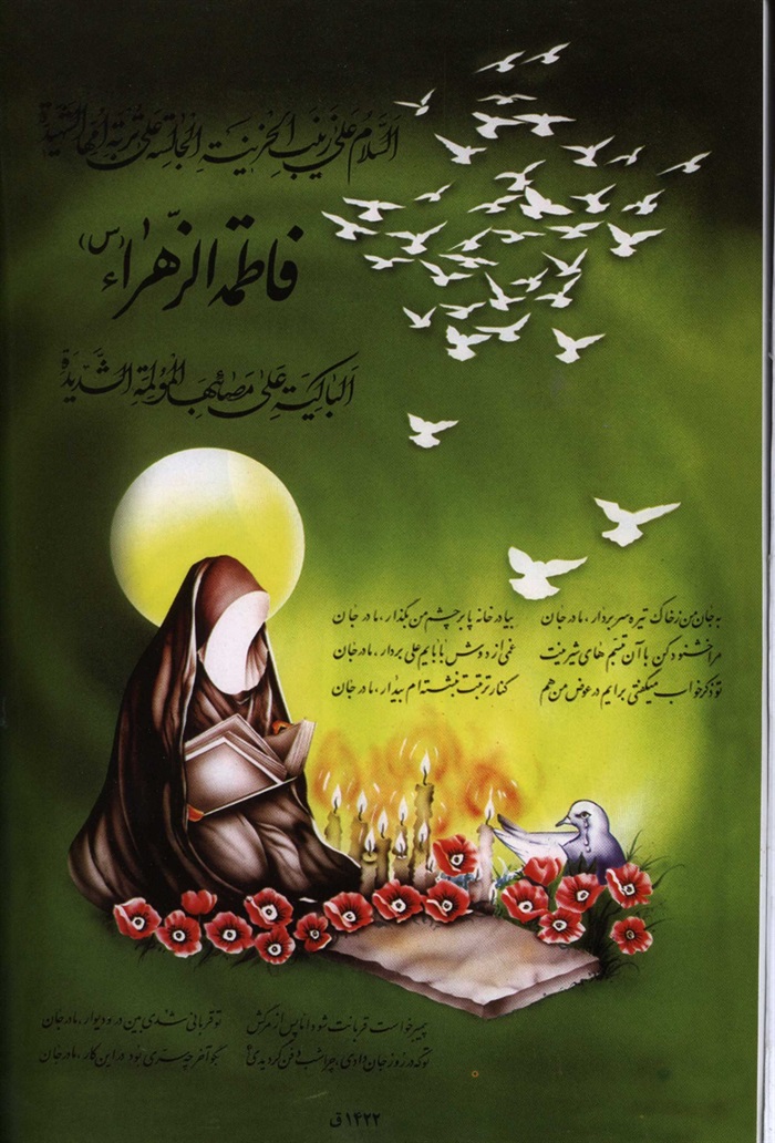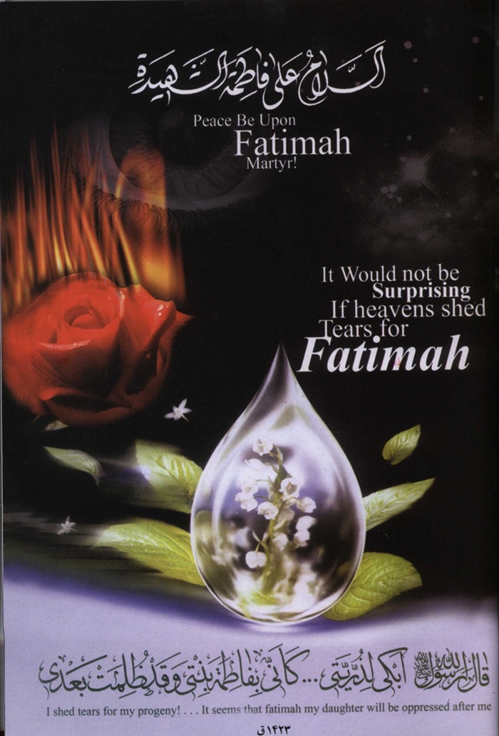 فاطمه زهرا علیها السلام میوه دل رسول خدا صلی اللّٰه علیه و آله و نور چشم خدیجه کبری علیه السلام است. فاطمه زهرا علیها السلام روشنی چشم رسول خدا صلی اللّٰه علیه و آله و موجب قرار دل خدیجه کبری علیها السلام است. شیعه در جهان سرافراز است که اسوه و هدایت گری همانند فاطمه زهرا علیها السلام برگزیده است. ملت شیعه در برابر ملت ها به وجود فاطمه زهرا علیها السلام افتخار می کند ای حبیبه حق ای شهیده راه ولایت ای زهرای مرضیه علیها السلام در سوگت گریانیم. جهان شیعه قرنهاست در عزای فاطمه شهیده علیها السلام اشک می ریزد. ای دلها بسوزید و ای اشکها بریزید زیرا فاطمه زهرا علیها السلام شهیده راه ولایت مظلومه است ای سید و سالار شهدا ای حسین بن علی علیه السلام ما در عزای مادر شهیده تان سوگواریم. دوستداران عصمت کبری فاطمه زهرا علیها السلام همه عزادار و سوگوارند. شهادت صدیقه کبری فاطمه زهرا علیها السلام بر شیعیان و دوستان تسلیت باد. ای مظلومه تاریخ اهل البیت علیهم السلام ای صدیقه شهیده علیها السلام همیشه در سوگت گریانی. ای مظلومه شهیده! ای فاطمه صدققه علیها السلام د رعزایت اشک ریزانیم. یا رسول اللّٰه صلی اللّٰه علیه و آله ! در عزای عزیزتان حضرت زهرای مرضیه علیه السلام به سوک نشسته ایم. در عزای صدیقه کبری فاطمه شهیده علیها السلام اشکی جاری و قلبی سوزان و
