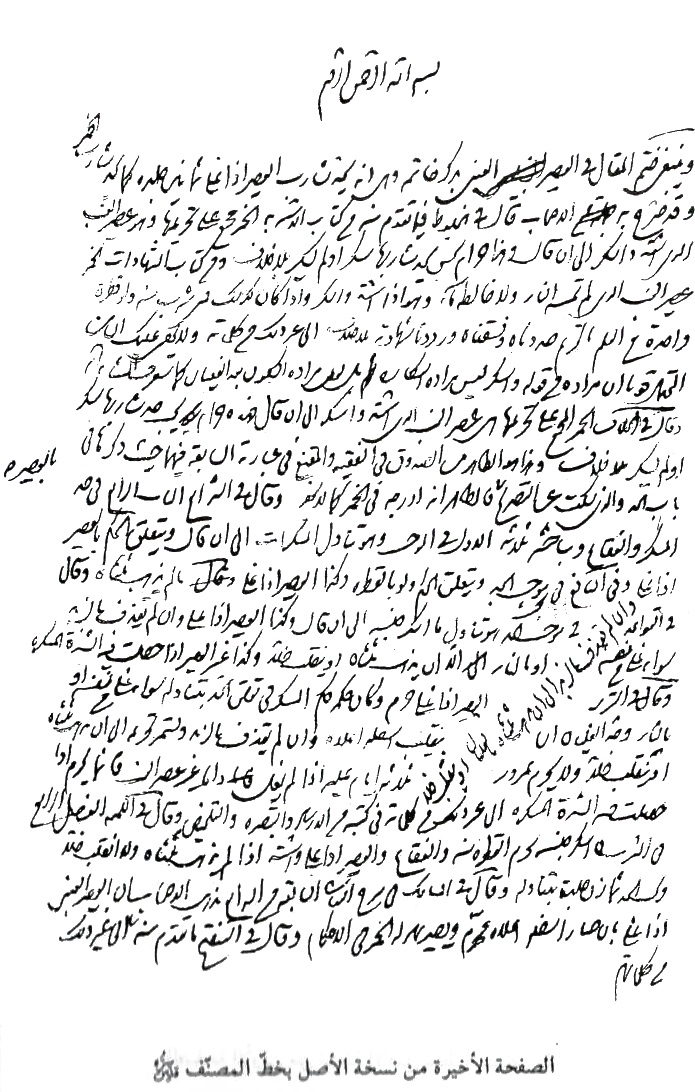 الصفحة الأخیرة من النسخة المحفوظة فی مکتبة آیة اللّه المرعشیّ قدس سره