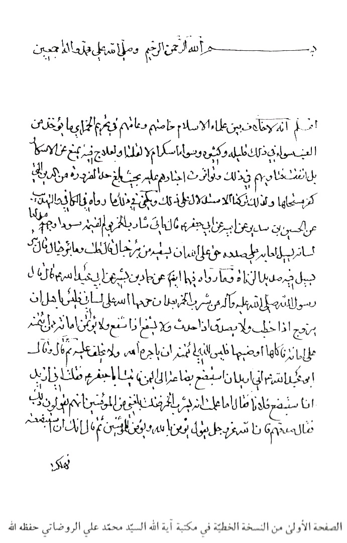 الحمد لله الذی وفقنا لإحیاء تصنیفات العلماء الأبرار الملتفط من آثار الأئمة الأطهار علیهم السلام