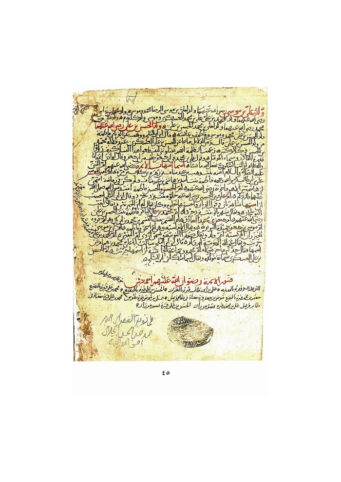 علیها إلی حضرته شرّفنی بإجازة مبینة طرق الوصول إلی آثار الرسول وآله الطیبین الطاهرین علیه وعلیهم الصلاة والسلام إلی یوم المعاد مفصلة فی فصلین یبین فیهما طرق العامة وطرق المتمسکین بالثقلین وهم شیعة سیّد الکونین وبعث إلیّ بمأثرة من مآثره سماها «البیان»، وهو جدیر بهذا الاسم إذ یبین الطرق بتبیان.