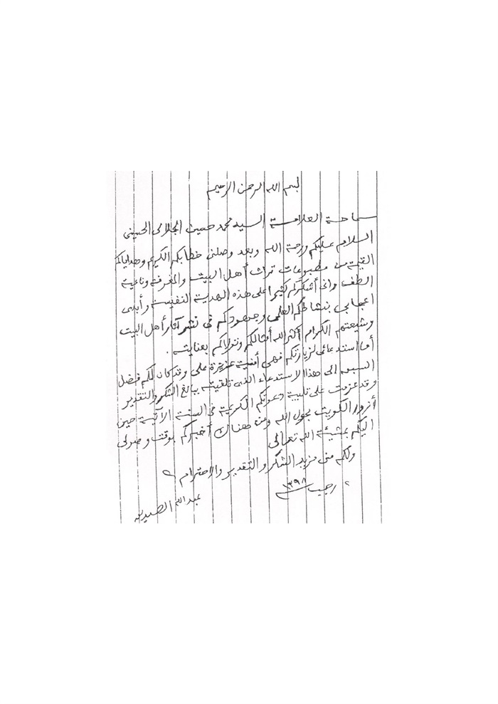 خط سماحة العلامة السیّد محمّدحسین الحسینی الجلالی أتحفنی تصویر النسخة
