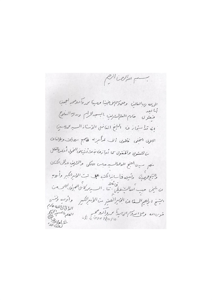 روایتی عن عدّة من مشایخی منهم: محدّث مکة المکرمة السیّد علوی بن عباس المالکی (ت 1391)، ومحدّث المغرب السیّد عبدالله الصدیق الغماری (ت1413)، ومسند مکة المکرّمة الشیخ محمّدیاسین الفادانی (1410)؛ کل واحد منهم بطریقه إلی «سد الأرب فی علوم الإسناد والأدب» للأمیر محمّد الکبیر المصری (ت1232).