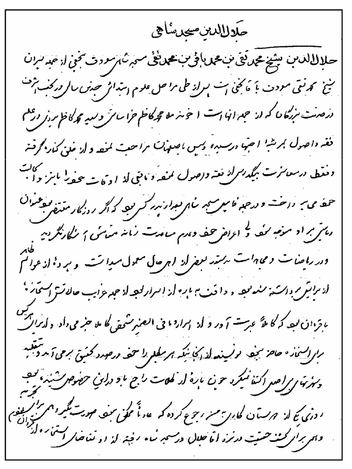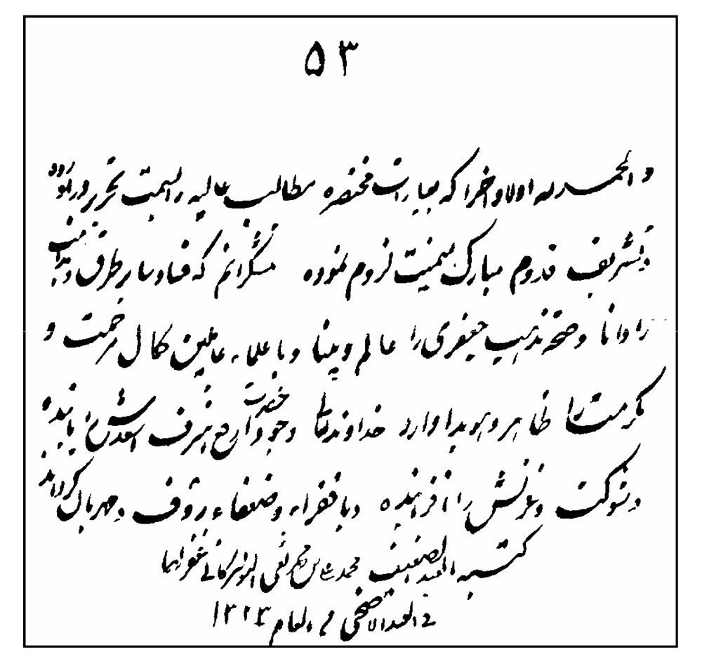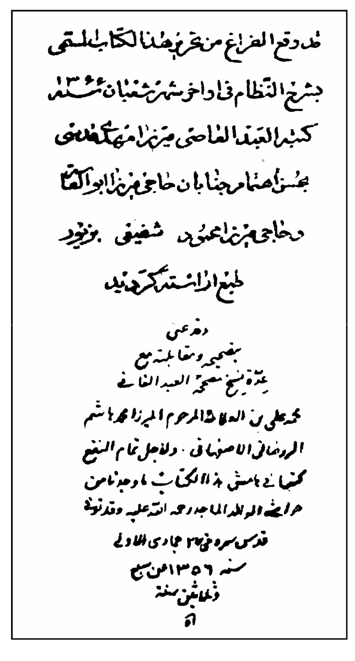 الروضة البهیة فی الطرق الشفیعیة، سید محمد شفیع جاپلقی، چاپ سنگی