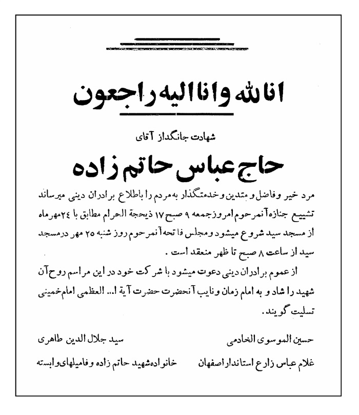 یادبود چهلمین روز درگذشت آیة الله حاج میرزا سید حسن چهارسوقی کتابفروشی ثقفی