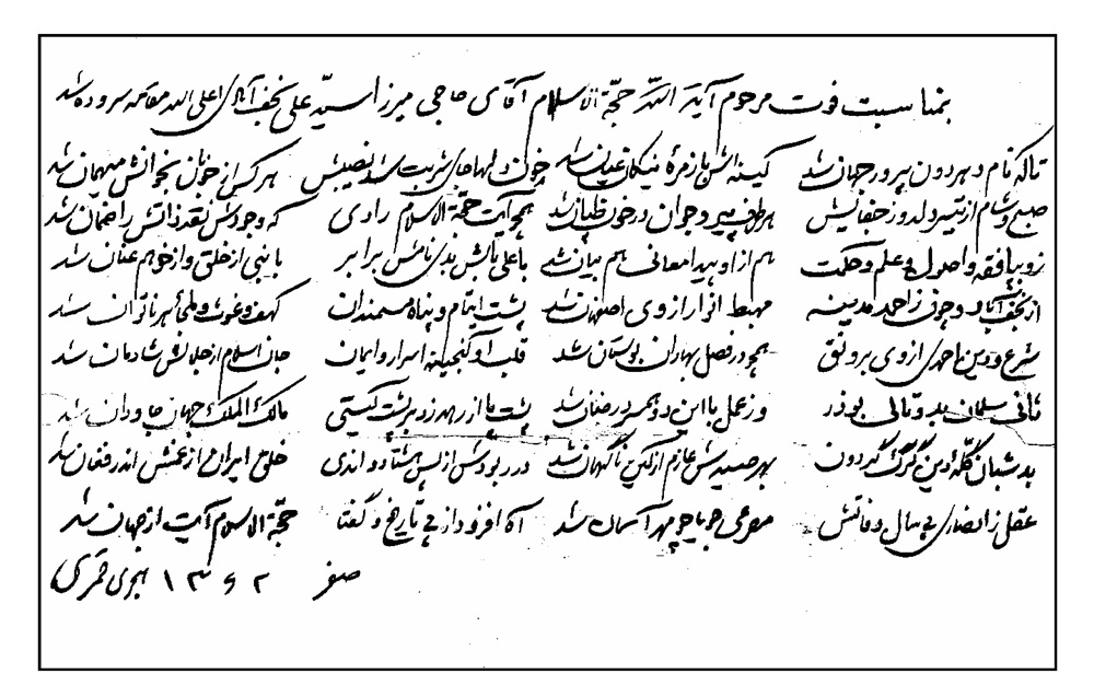 گوهر گران بها" در تاریخ وفات علما، سید مصلح الدین مهدوی، خطی