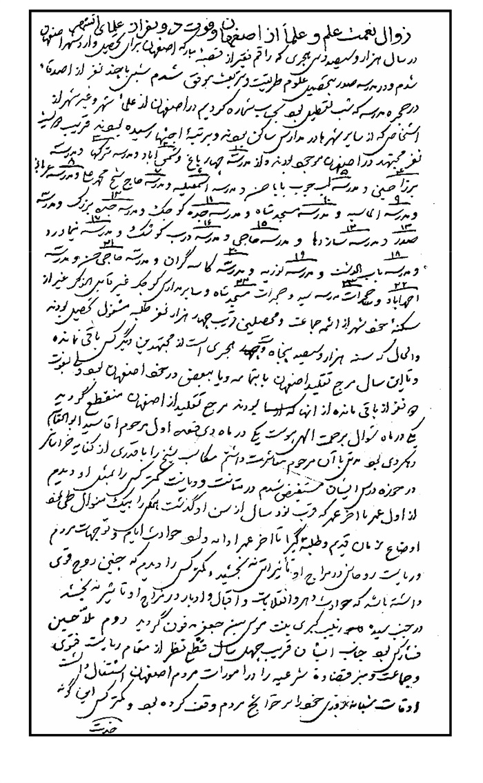 مدارس اصفهان، حیدرعلی ندیم الملک، نسخه خطی