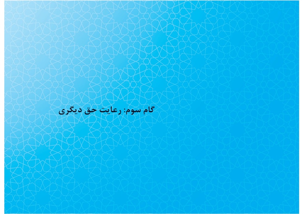1.5 نیکی کردن: «بِرّ الوالدینِ واجبٌ و إنْ کانا مُشرکین و لاطاعة لهما فی معصیة الخالق.» (= نیکی به پدر و مادر، اگرچه مشرک باشند، واجب است؛ ولی محدودۀ اطاعت از پدر و مادر تا جایی است که اطاعت آن ها، معصیت خدا نباشد.)