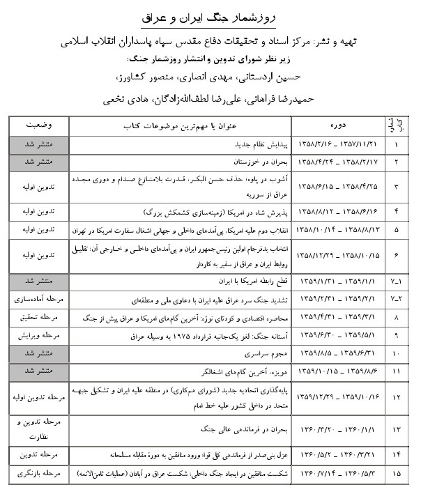 زیر نظر شورای تدوین و انتشار روزشمار جنگ: