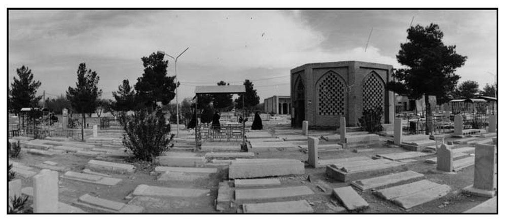((تکیه ایست وسیع، آباد، مملو از قبور که اتّفاقاً قبور با الواح قائم و عکسهای