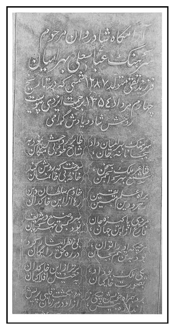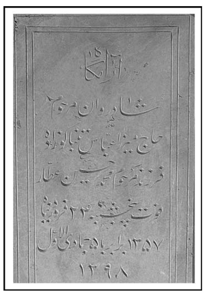 الصاق شده اش مشابهت به قبرستان ارامنه پیدا کرده و این طریق به تازگی رسم شده که سر قبور لوحه یی قائم نصب و عکس صاحب قبر را در آن زیر آینه یا ساده می چسبانند.»(1)