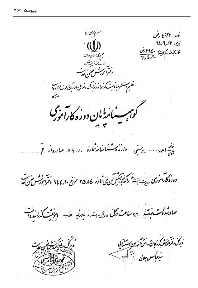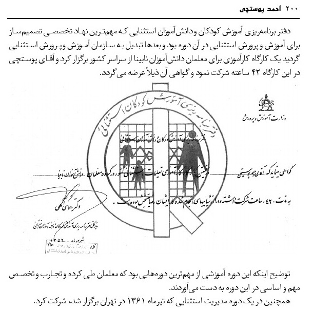 - آقا کوچکی، همکار در آموزش استثنایی (همکار و آشنا)