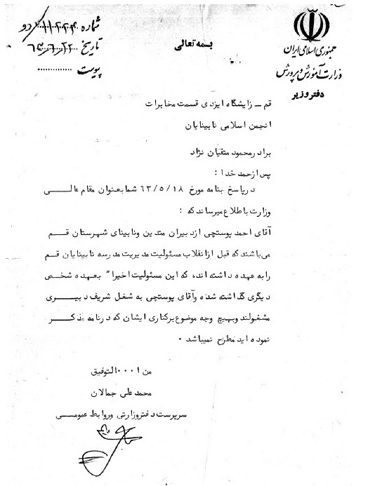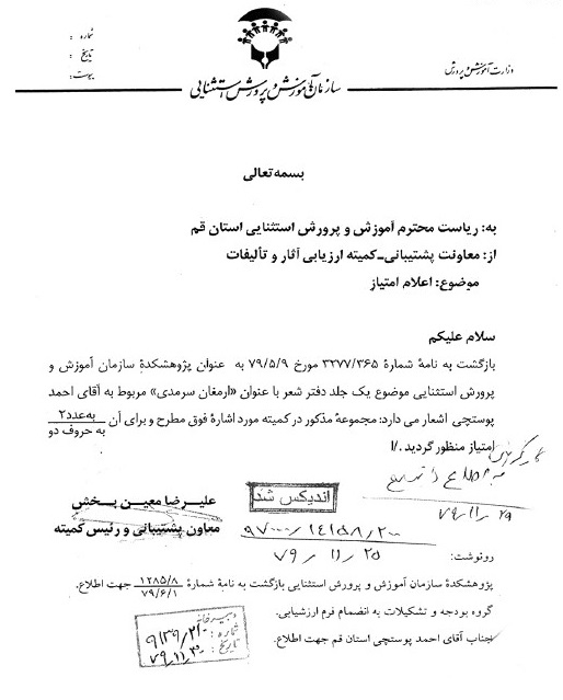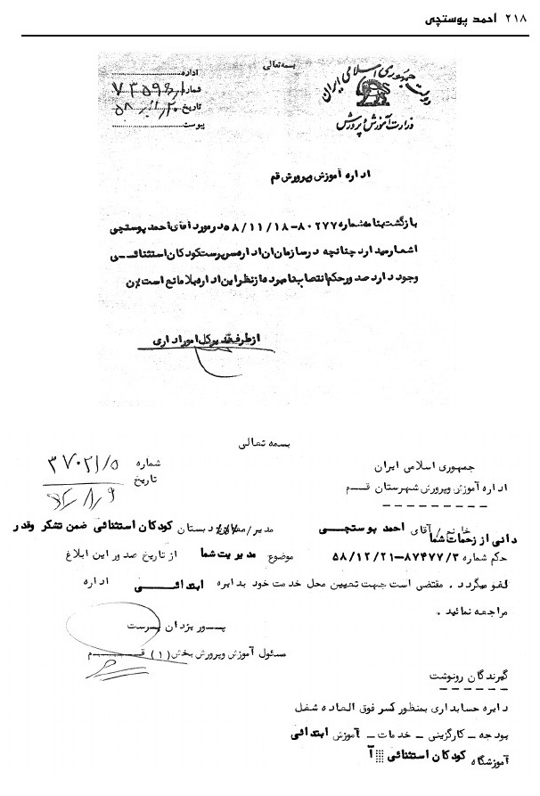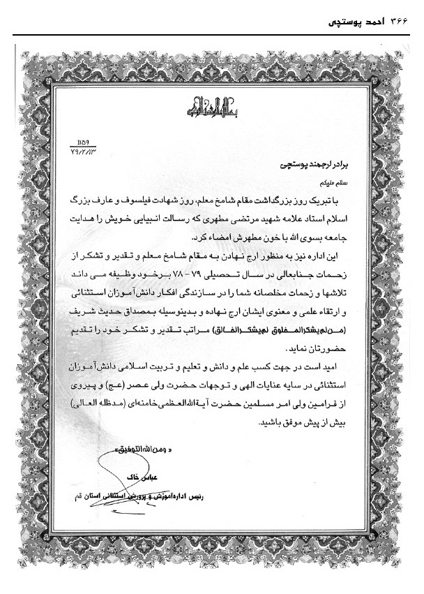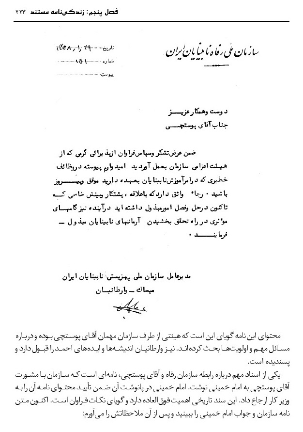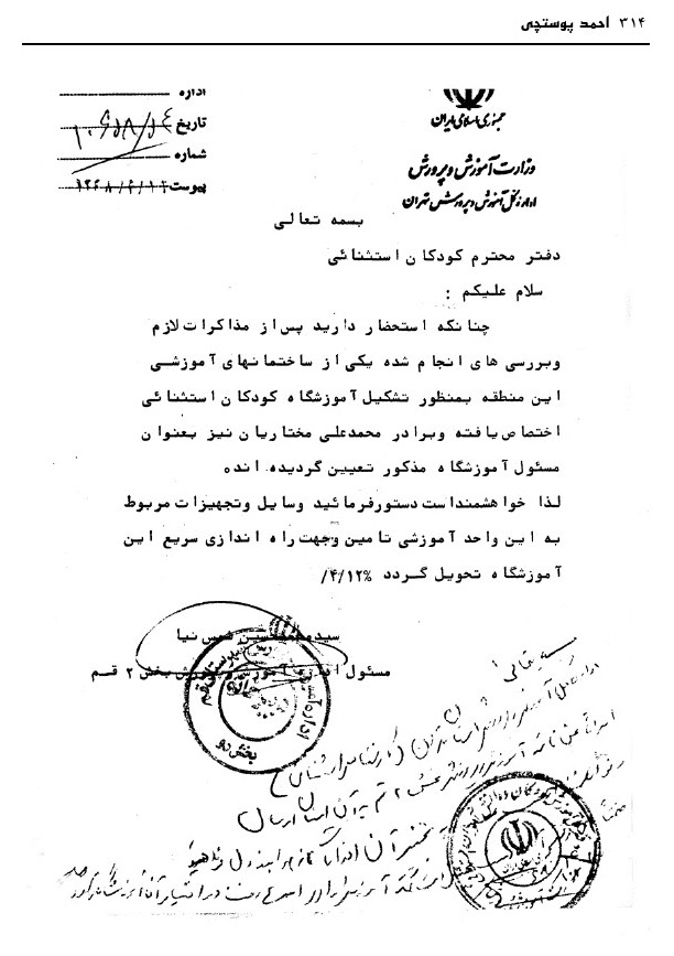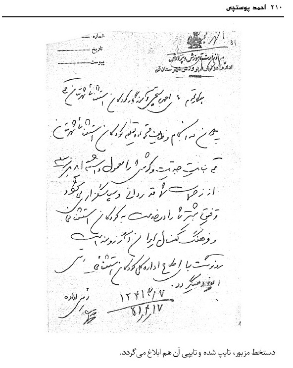 بنیانگذار آموزش و پرورش استثنایی قم مرحوم پوستچی، به کوشش منصوره ضیائی فر، قم، دفتر فرهنگ معلولین، 1396.