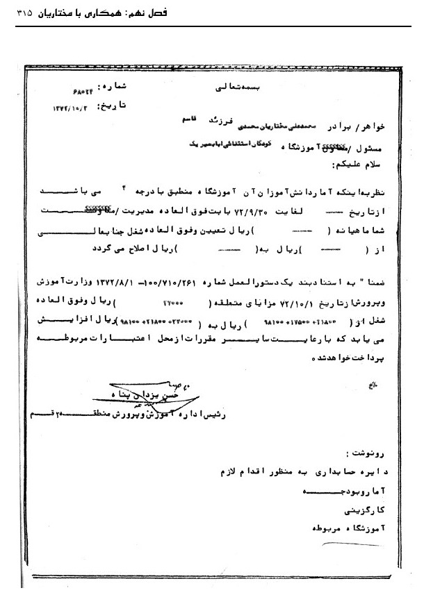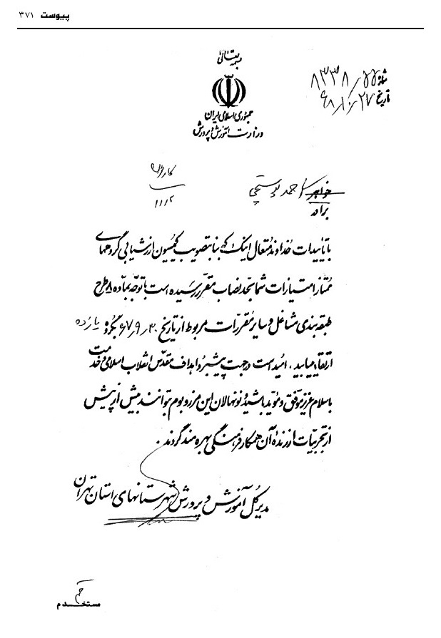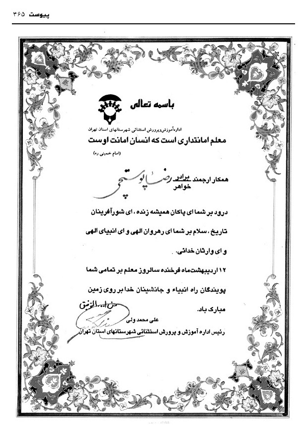 - محمدحسن قراگزلو، همکار در آموزش و پرورش (همکار و آشنا)