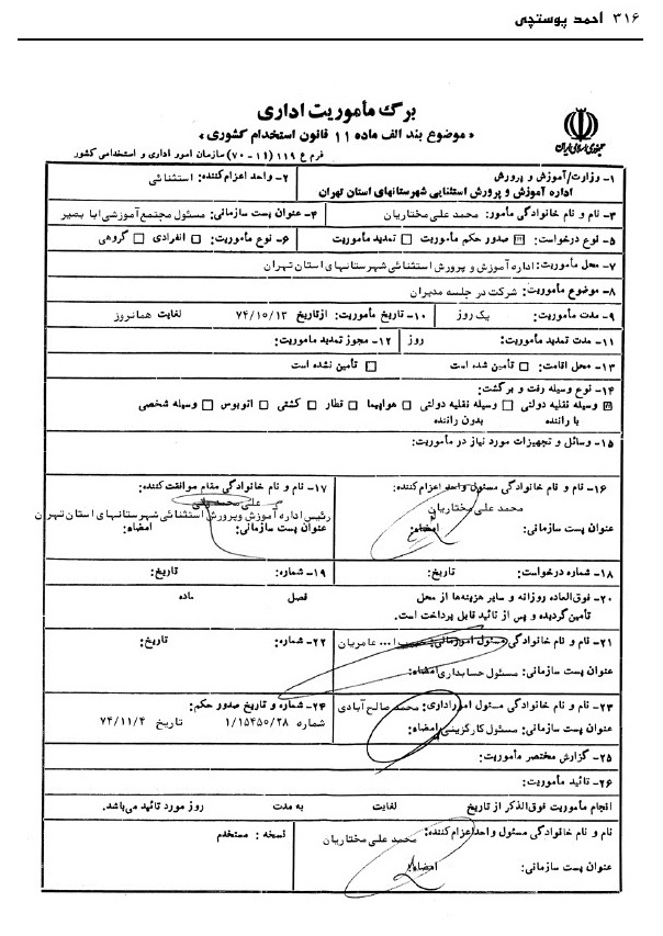 موضوع : پوستچی، احمد، 1321 - 1389 . -- سرگذشتنامه