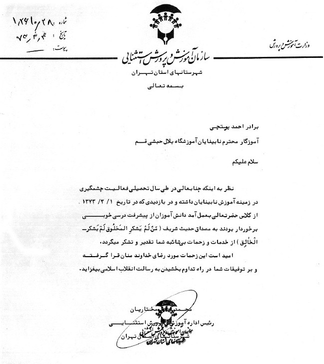 موضوع : Blind -- Iran -- Qom -- Education