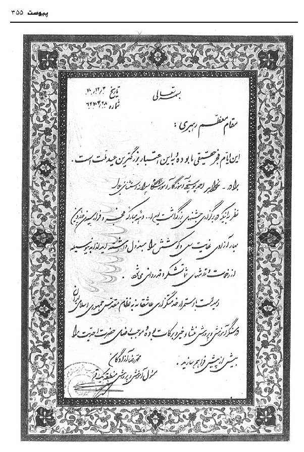 - ولی اللّه شاه محمدپور (همکار و آشنا)
