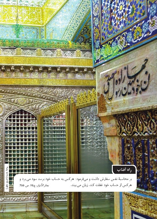 لَیْسَ مِنَّا مَنْ لَمْ یُحَاسِبْ نَفْسَهُ فِی کلِّ یَوْمٍ فَإِنْ عَمِلَ خَیْراً اسْتَزَادَاللهَ مِنْهُ وَ حَمِدَاللهَ عَلَیْهِ وَ إِنْ عَمِلَ شَرّاً اسْتَغْفَرَاللهَ مِنْهُ وَ تَابَ إِلَیْه.