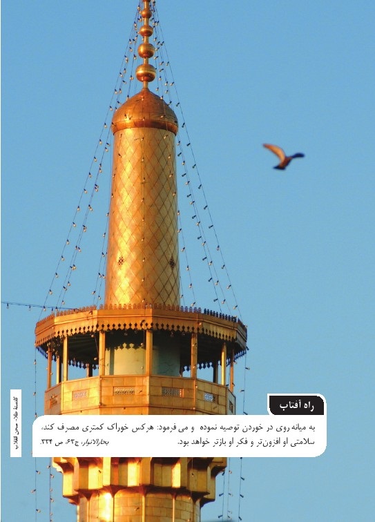 خوردنش استفاده کند، اما به سراغ خدا نرود و نظرات خدا را در خوردن به کار نگیرد. در حالی که عمل به فرمول خداوند در خوردن، هم ضامن سلامتی جسم است و هم ضامن سلامتی روح.
