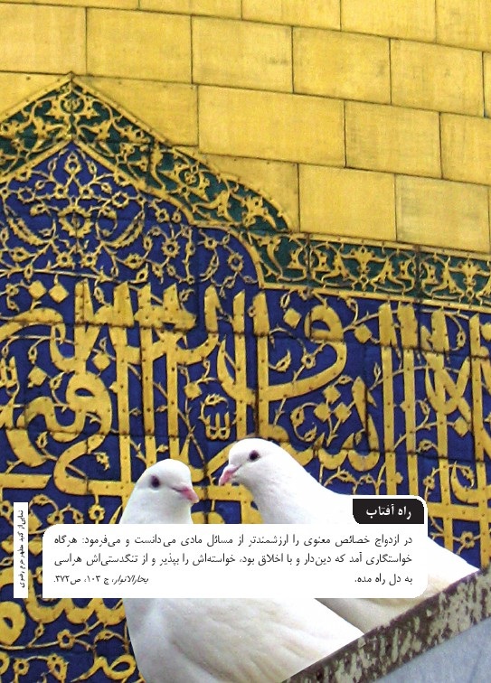 این گونه باشد، یقیناً دختر در زندگی آرامش بیشتری خواهد داشت. یادتان که نرفته است! تمام ویژگی ها و قسمت های فرمول باید در خدمت آرامش انسان باشند. بر همین اساس، اسلام به دختر دادن به چنین مردی سفارش کرده است، حتی اگر وضعیت مالی مساعدی نداشته باشد و به عکس، اسلام سفارش کرده است به فردی که اخلاق درستی ندارد، دختر ندهیم.(1)