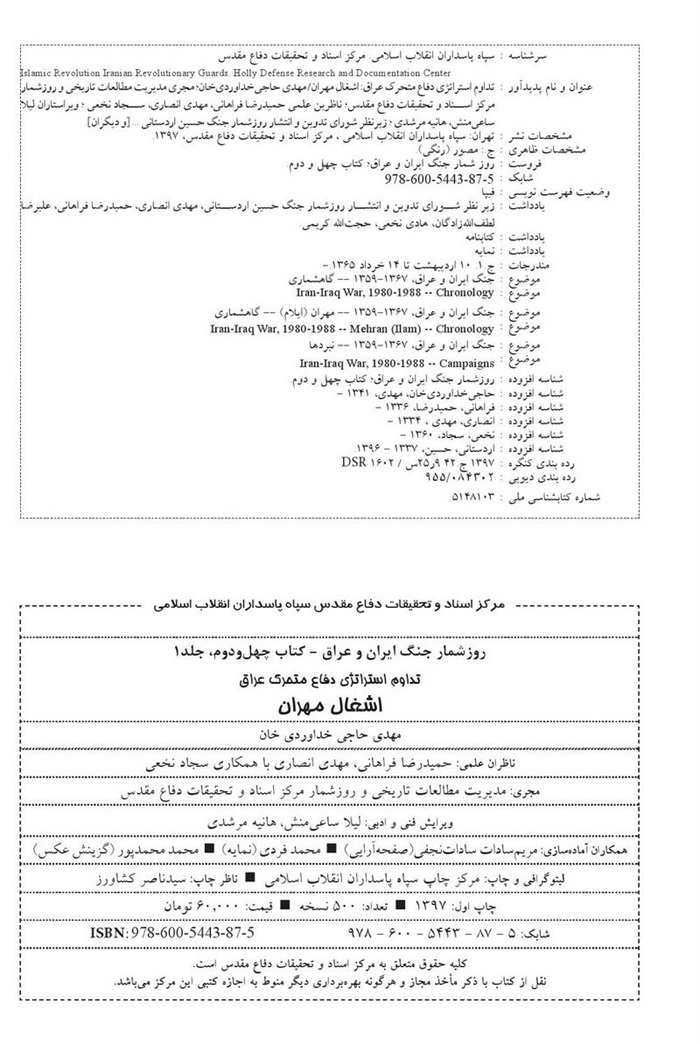 مشخصات نشر : تهران: سپاه پاسداران انقلاب اسلامی، مرکز اسناد و تحقیقات دفاع مقدس، 1397.