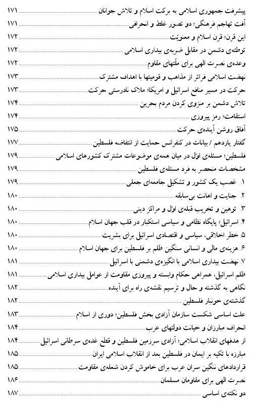 امروزه بر این دلائل، یک نکته ی کلیدی و اساسی دیگر افزوده شده است و آن، نهضت بیداری اسلامی است که سراسر منطقه را فرا گرفته و فصل تازه و تعیین کننده ای در سرگذشت امّت اسلامی گشوده است. این حرکت عظیم که بی گمان میتواند به ایجاد یک مجموعه ی مقتدر و پیشرفته و منسجم اسلامی در این نقطه ی حساس جهان منتهی شود و به حول و قوه ی الهی و با عزم راسخ پیشروان این نهضت، نقطه ی پایان بر دوران عقب ماندگی و ضعف و حقارت ملّتهای مسلمان بگذارد، بخش مهمّی از نیرو و حماسه ی خود را از قضیه ی فلسطین گرفته است.