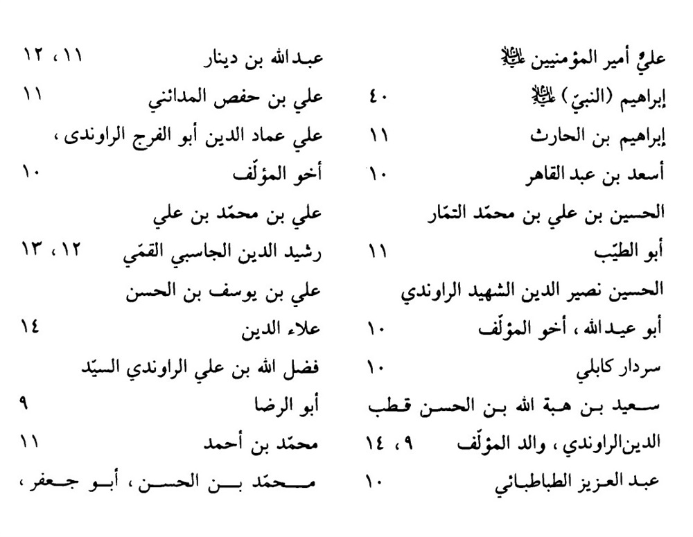 قال ابن العدیم : أخبرنا أبو المؤیّد ، محمّد بن محمود بن محمّد ، قاضی خوارزم ، قال : أخبرنا محمّد بن محمّد بن سعید الراوندیّ ، قال : أخبرنی والدی ، محمّد بن سعید بن هبة الله ، الراوندیّ ، قال : أخبرنی والدی ، قطب الدین ، سعید بن هبة الله بن الحسن ، الراوندیّ ، قال : أخبرنا الشیخ أبو جعفر