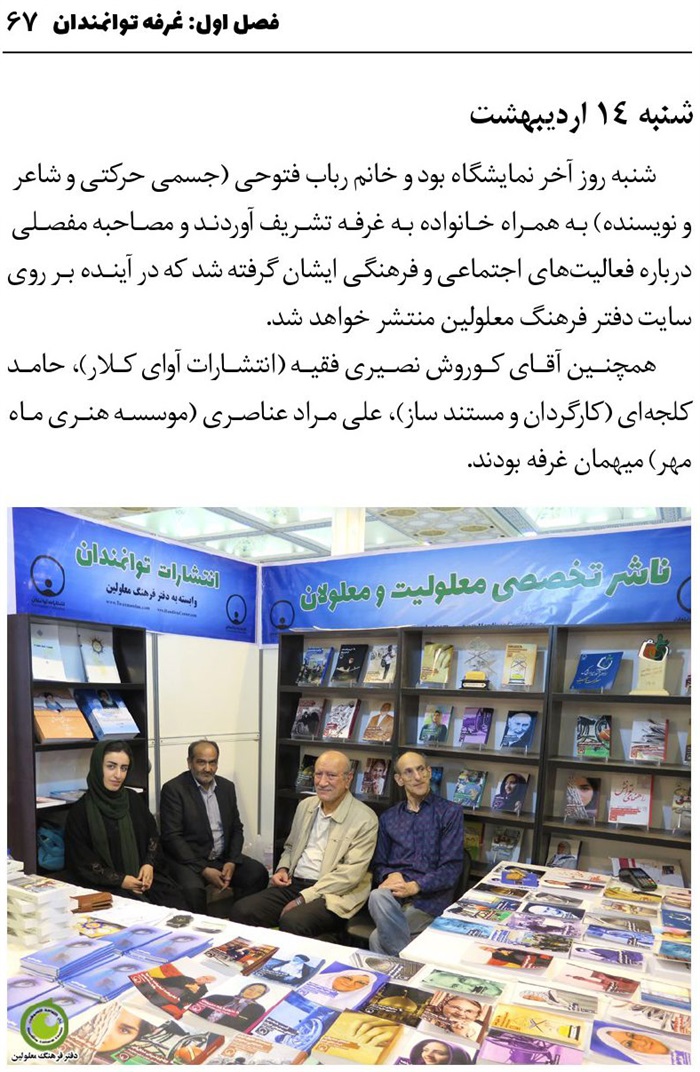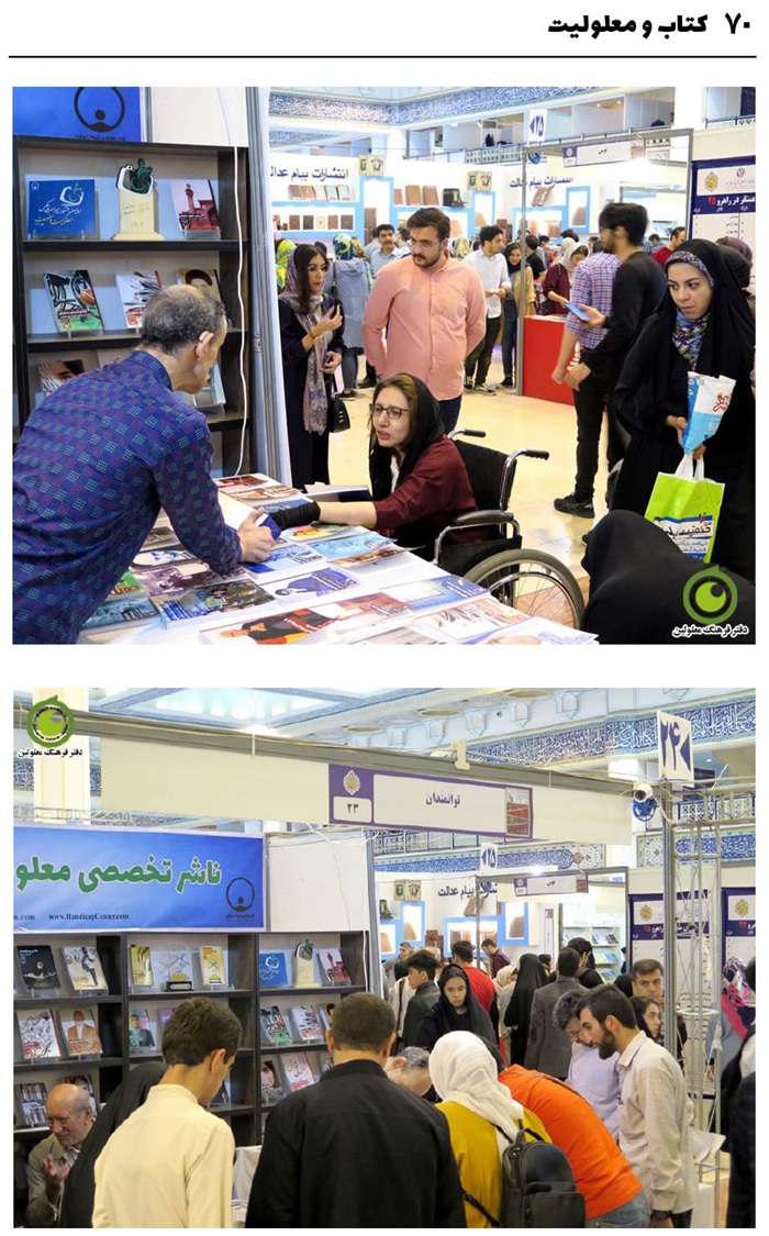 مستحضر هستید که در ایران نرخ رشد کتاب معلولیتی بسیار پایین است. یعنی حتی نسبت به همسایگانمان در حاشیه خلیج هم ما نرخ رشد پایین تری را داریم، ولی امیدوار هستیم وضعیت بهتر شود. البته در این دو سه سال اخیر نرخ بالا رفته است. اگر ما بخواهیم به شاخص جهانی در زمینه کتاب معلولین برسیم باید سالانه حدود 1000 عنوان کتاب در ایران منتشر بشود. این امر دست یاری همه دوستان را می طلبد که در این قضیه کمک بفرمایند تا ان شاء اللّه به این مهم دست پیدا کنیم.
