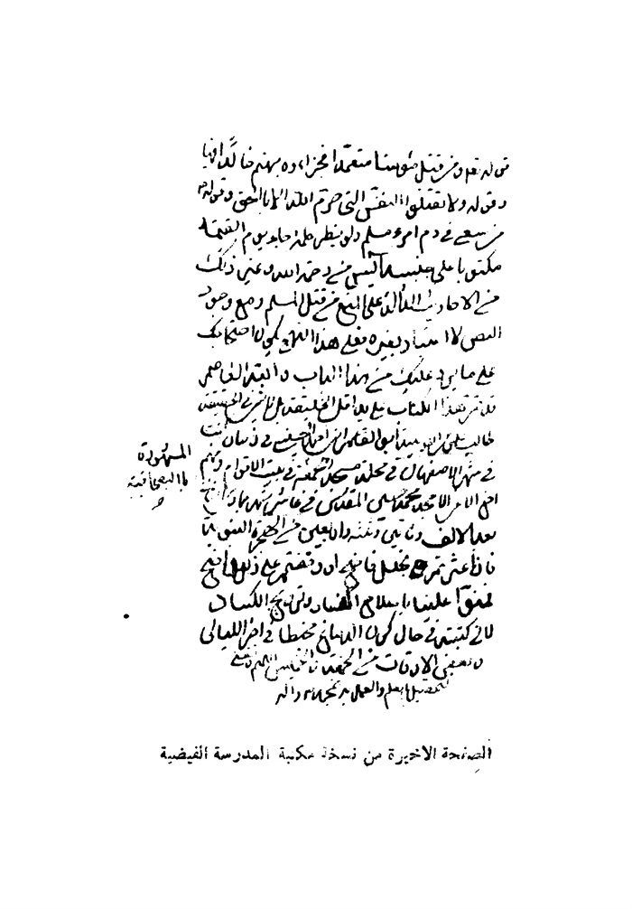 قال ابن فهد : هذا آخر رسالة المصنف قدس الله روحه ثم قال : وأعلم ان غیر المصنف أجاب عن هذا الاشکال بمنع الحصر لأن حاصل السؤال ان التیاسر أما إلی القبلة فیکون واجبا لا مستحبا وأما عنها فیکون حراما ، والجواب منع الحصر بل نقول التیاسر فیها وجاز اختصاص بعض جهات القبلة