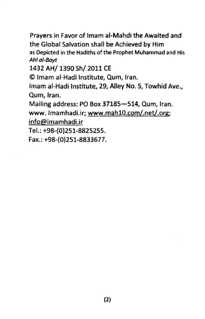 15 شعبان المعظّم مؤسّسة الإمام الهادی علیه السلام 1432 قم المقدّسة