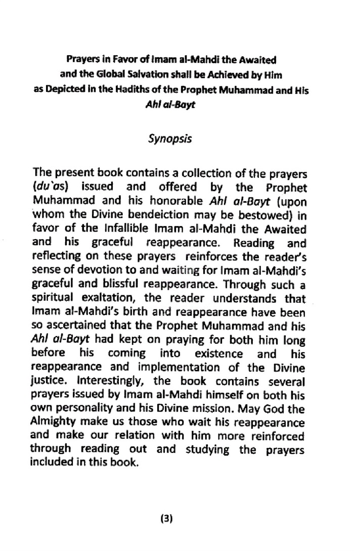 وقد أقدمت مؤسّسة الإمام الهادی علیه السلام علی جمع عدد من تلک الأدعیة فی هذا الکتاب، لتضعه بین أیدی منتظری قائم آل محمّد علیهم السلام، آملین أن ینال هذا العمل رضاه، وأن یکون وسیلةً لتعمیق التواصل بینه وبین قلوب مُحبّیه، وعاملاً من عوامل تعمیق تعلّقهم الروحی بمقتداهم الغائب الحاضر؛ ونتوخّی أن یتمخّض عن تمعُّن القرّاء الأکارم فی هذه الأدعیة وقراءتهم لنصوصها وتردیدهم لألفاظها عمقٌ فی معرفتهم للبارئ جلّ وعلا وتوجّههم إلیه وارتباطهم به فی کلّ جزئیّات حیاتهم.