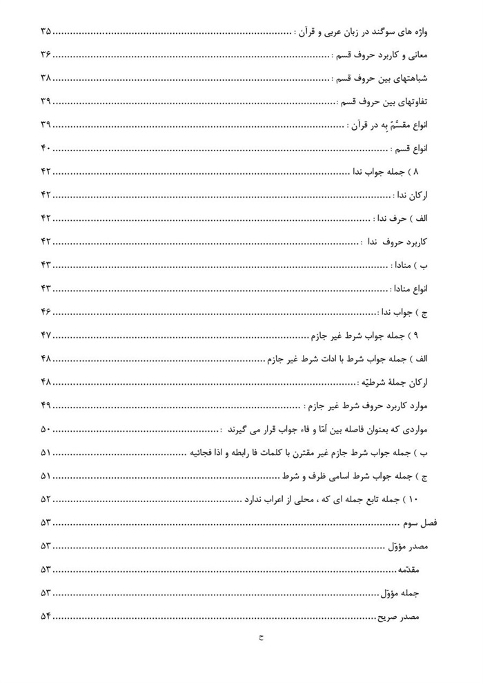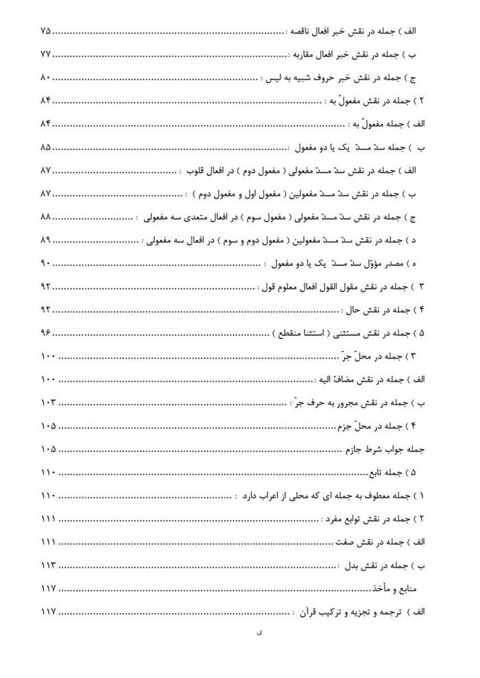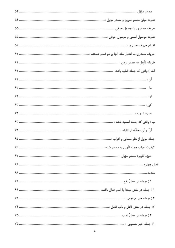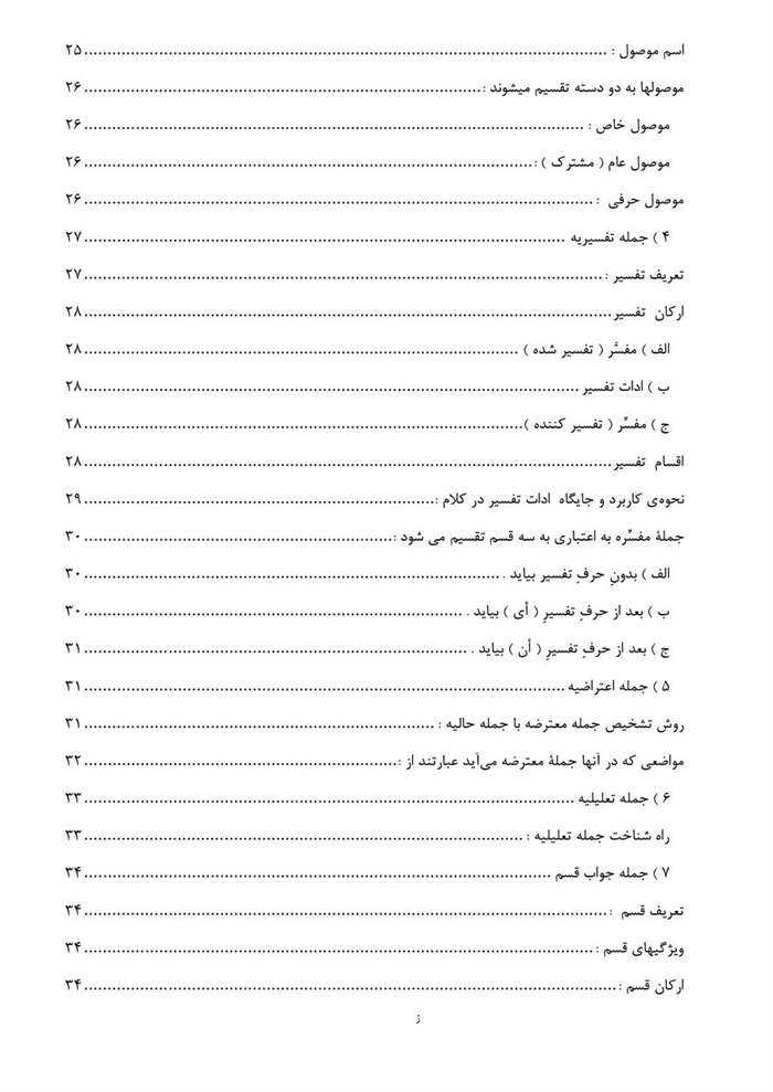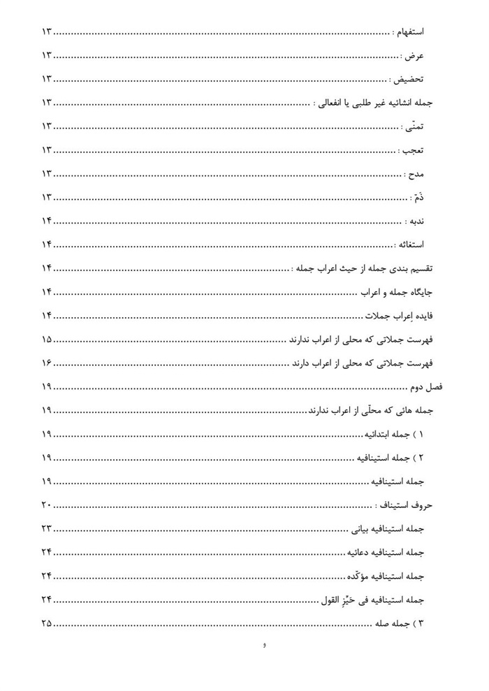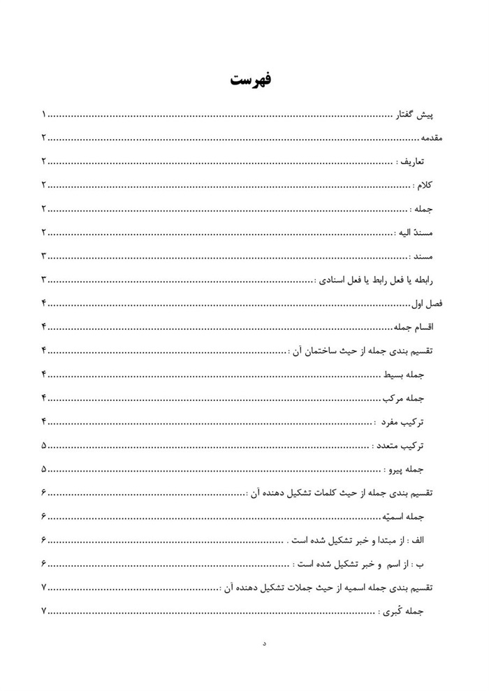 * این کتاب که در چهار فصل تدوین یافته ، سعی بر این شده است که برای یادآوری و روشن شدن مطالب ، مباحث نحوی عناوین ذکر شده در هر فصل ، در حد مختصر بیان شود .