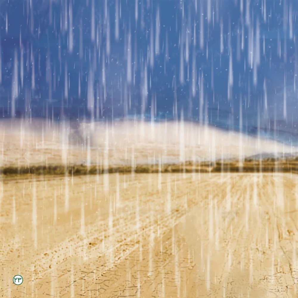 رحمت خداجوشش گرفت و یک لحظه همه مردم باچشم خودشان دیدند که باران شروع به باریدن کرد و رفته رفته زمین خیس شد بوی خاک تفتیده به مشام می رسید که آرام آرام سیراب میشد.