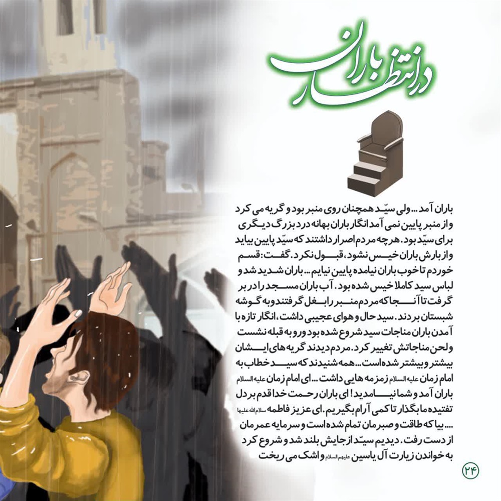 باران آمد.... ولی سیدهمچنان روی منبر بود و گریه می کرد و از منبر پایین نمی آمد انگار باران بهانه درد بزرگ دیگری برای سید بود.