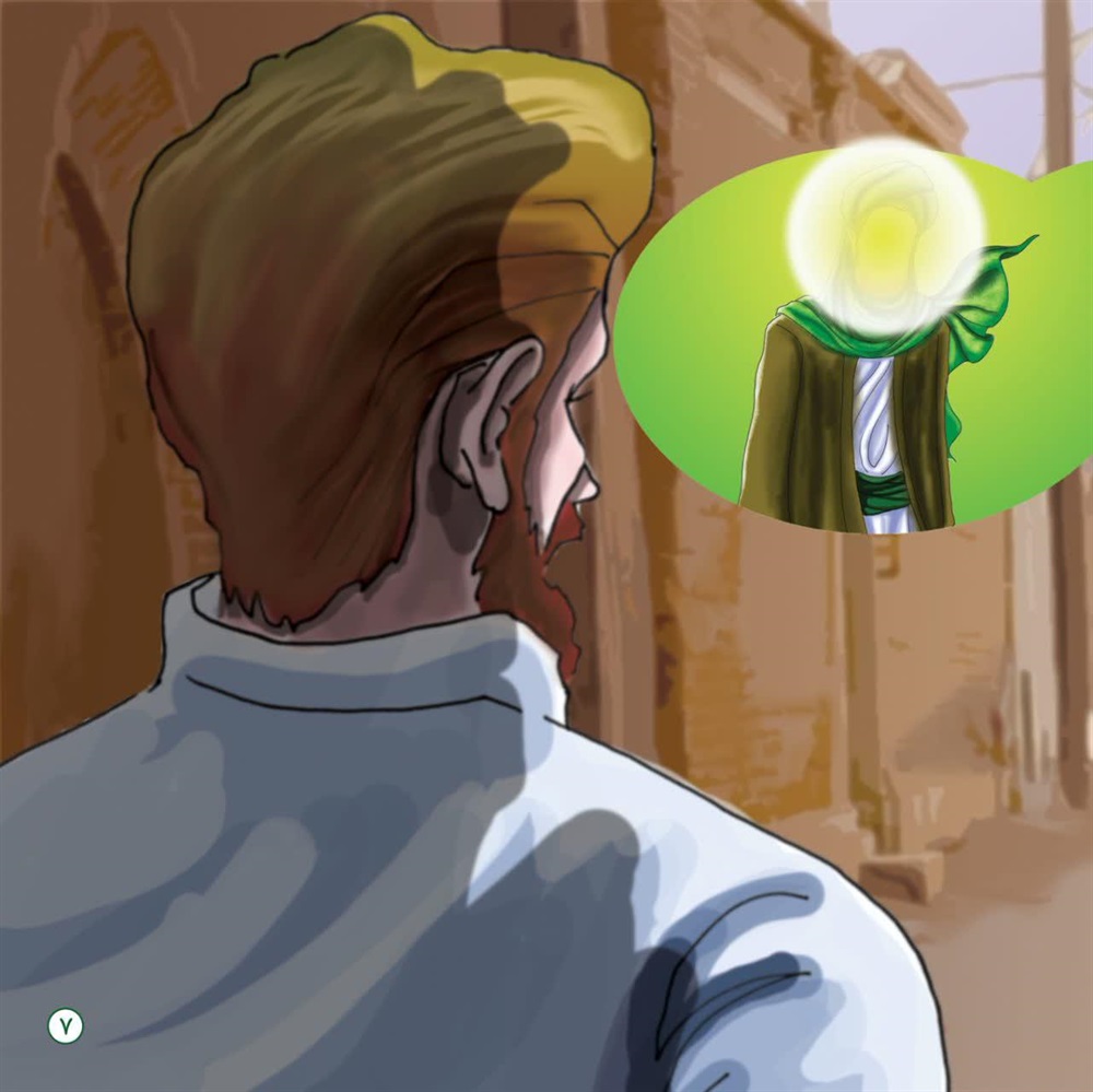 من و پدرم نشسته بودیم که دیدیم چند پیرمرد که در لباس چوپانی و کشاورزی بودند، آمدند و کنار ایشان نشستند.