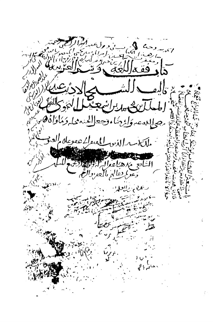 توضیح : «فقه اللغه و سرّ العربیه» اثر عبدالملک بن محمد بن اسماعیل ثعالبی (متوفی 429 ق) است که به روش موضوعی مطالب کتاب را در یک جلد به زبان عربی به نگارش درآورده است. مولف در مقدمه کتاب تصریح می کند که کتاب را برای وزیر ابوالفضل عبدالله بن احمد المیکالی تالیف کرده است.