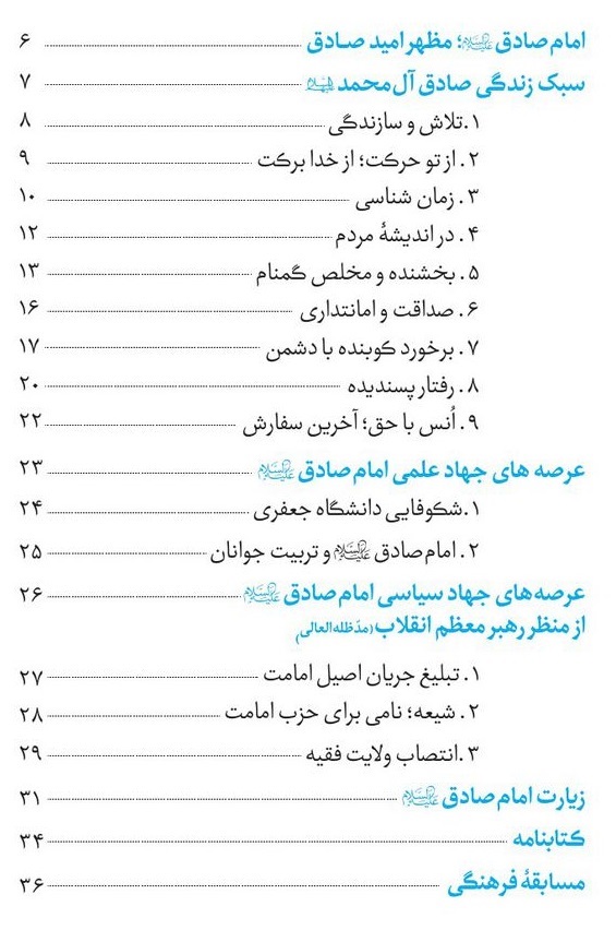 4. احمدی، حبیب الله، امام صادق علیه السلام ؛ الگوی زندگی،چ؟، قم: نشر فاطیما، 1385ش.