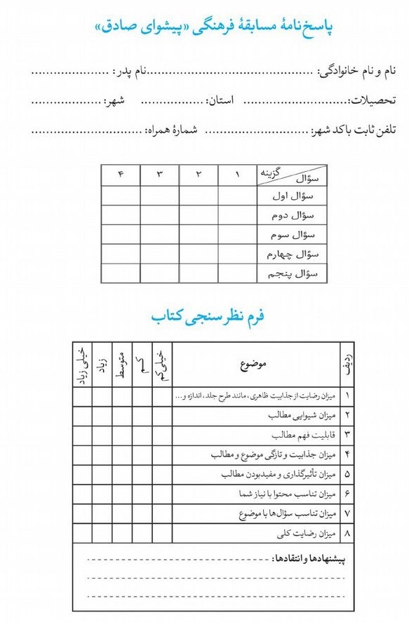 * سؤال ها از متن موجود طرح شده است و افراد بالای دوازده سال می توانند در مسابقه شرکت کنند.