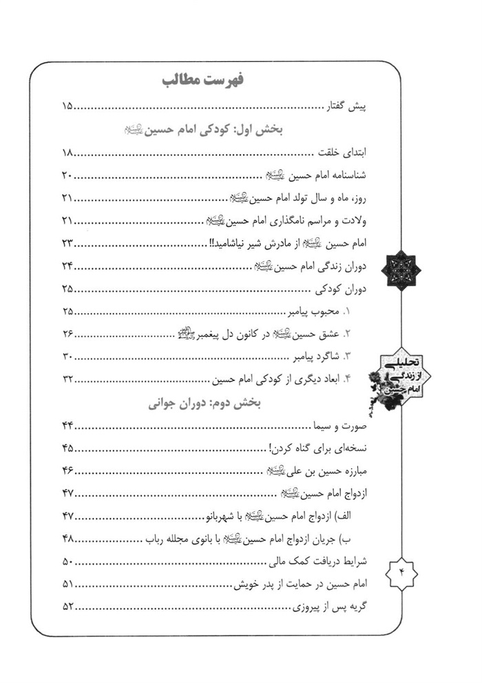 18. چهل حدیث از امام حسین، ابراهیم احمدیان، نشر: پردیسان، چاپ اول.