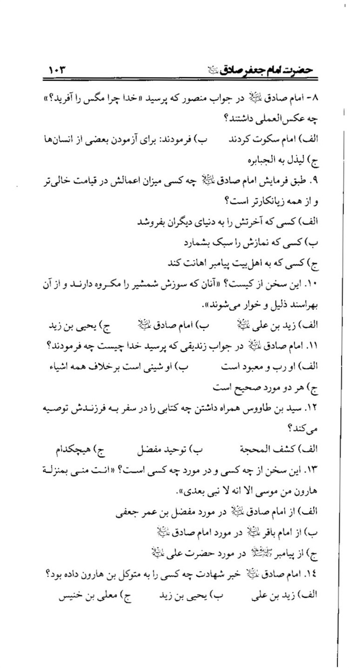 موضوع:جعفربن محمد، (ع) ، امام ششم، 83 - 148ق. -- سرگذشتنامه