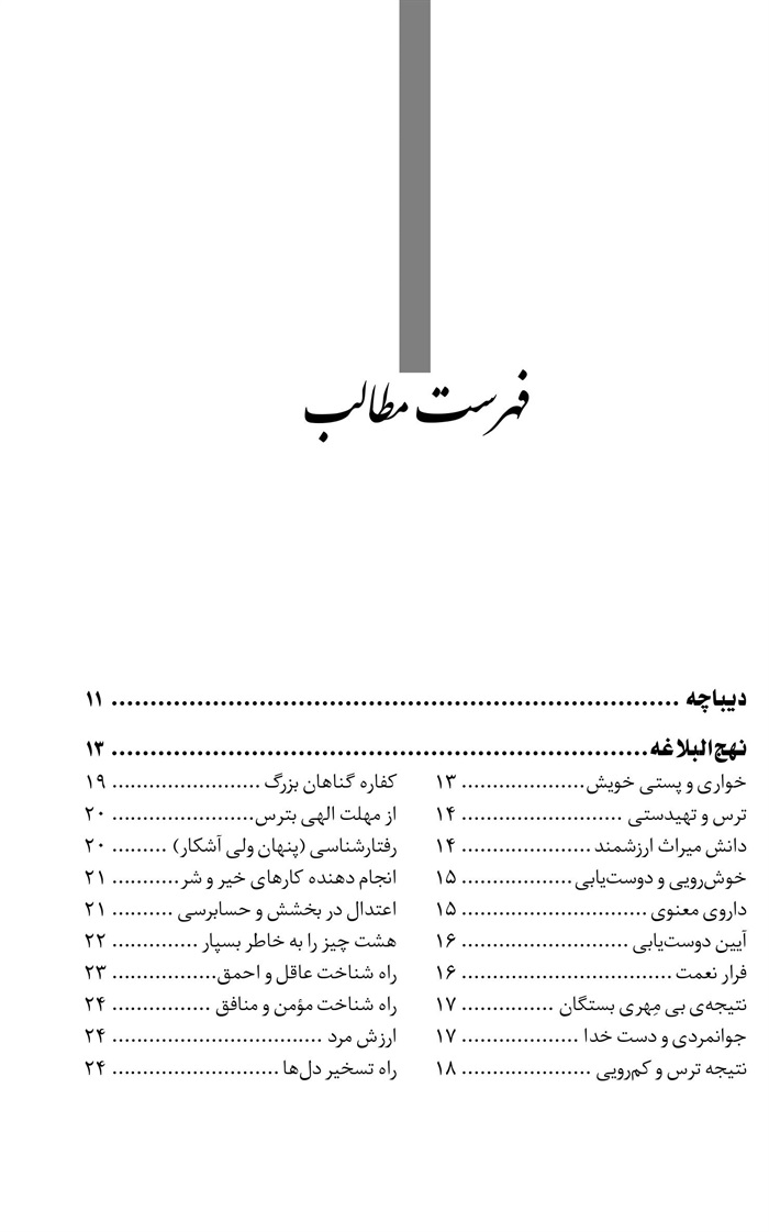 در این دفتر کوچک، گلبرگی از سخنان تربیتی و اخلاقی امیر بیان؛ امیرالمومنان(علیه السلام) را از کتاب نهج البلاغه و غُرَرُالحِکَم همراه با شرح آن گردآوری کرده ایم و کتاب را