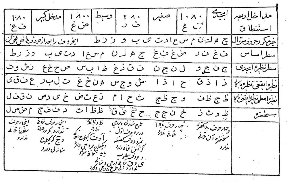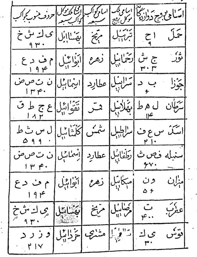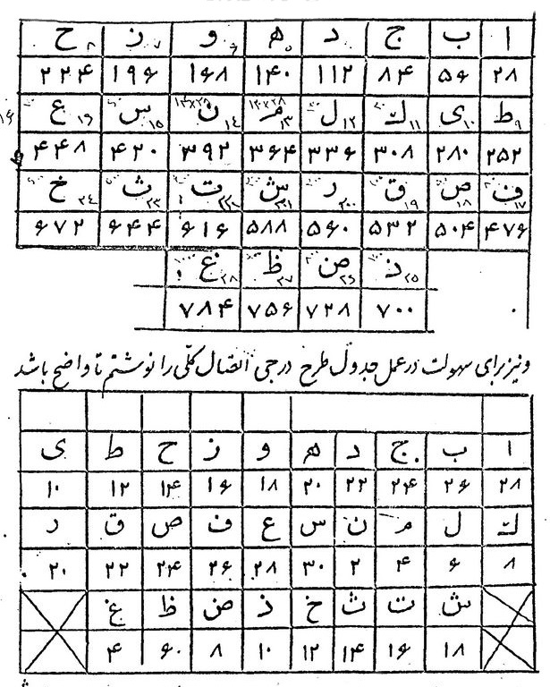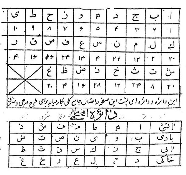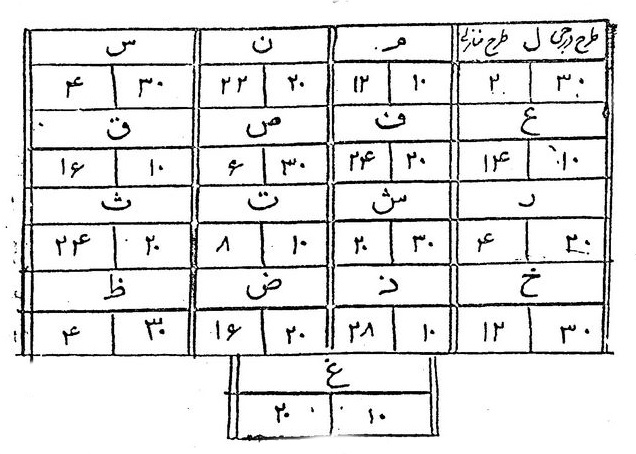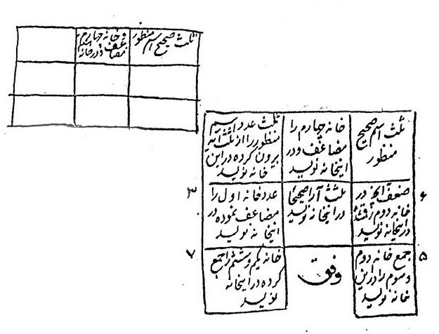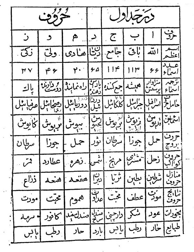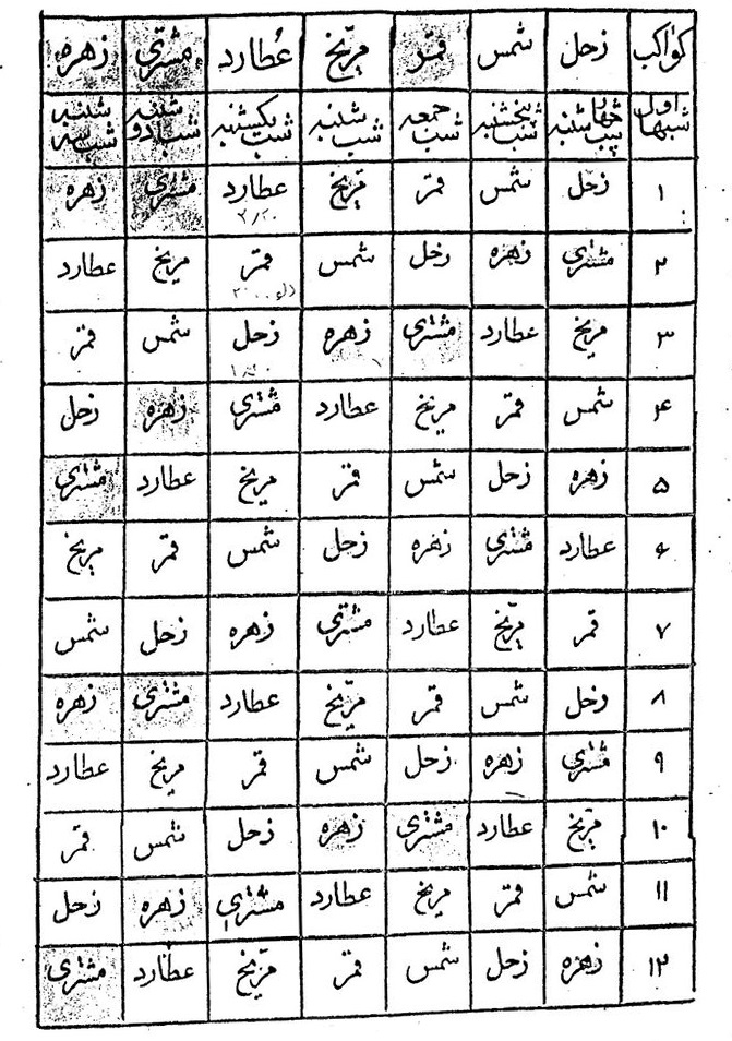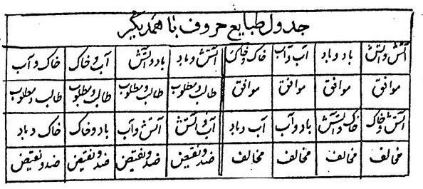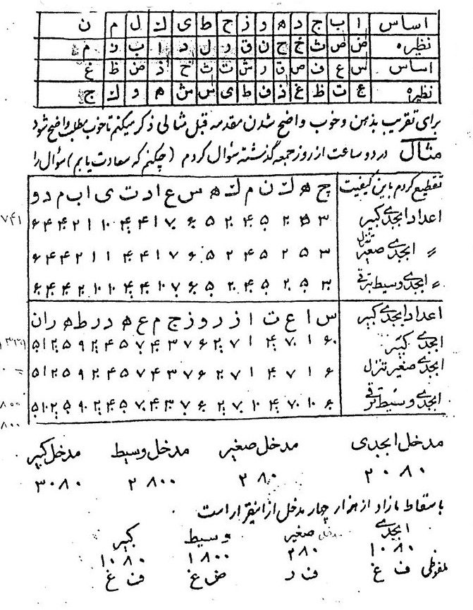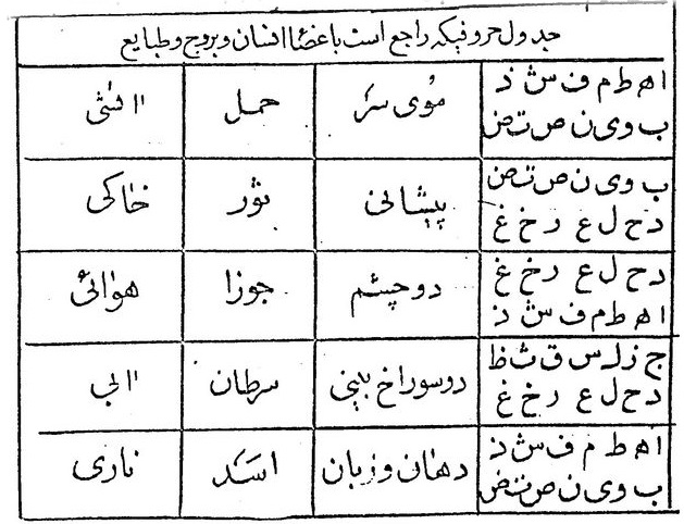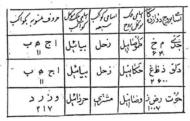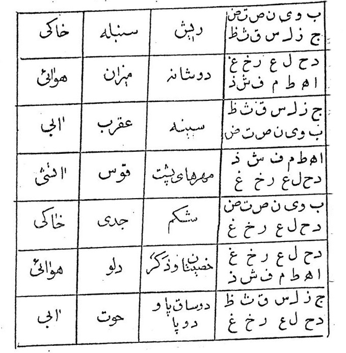 پس چار دیگر بر سر اعداد افرابی*** منزلگه آفتاب در وی میگیرچون جمعشو طرح کنش یک یک و گیر*** هر برج که آخر آید آن طرح پذیر