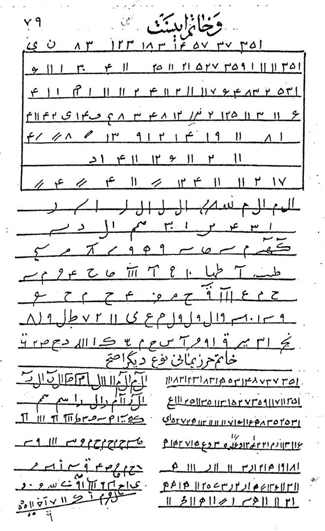 مثلاً طالع برج را در روزی که در آن هستیم خواستیم بدانیم روز بیستم ماه ذیحجة الحرام بود و از روز چهار ساعت گذشته چهار را در پانزده ضرب کردیم حاصل ضرب شصت شد عدد بیست که از ماه گذشته بود بر حاصل ضرب افزودیم. هشتاد شد چون آفتاب در برج حوت بود از حوت گرفته سی را از آن بحوت دادیم و سی را بحمل باقیماند بیست دانستیم که طالع برج بیستم درجه ثور است و هکذا باقی را باین نحو قیاس کن.